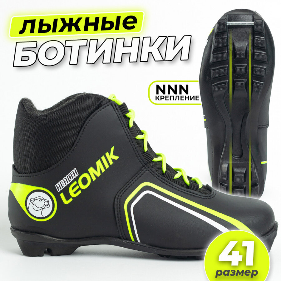 Купить Ботинки лыжные Leomik Health (green) NNN, размер 41, черно-неоновые