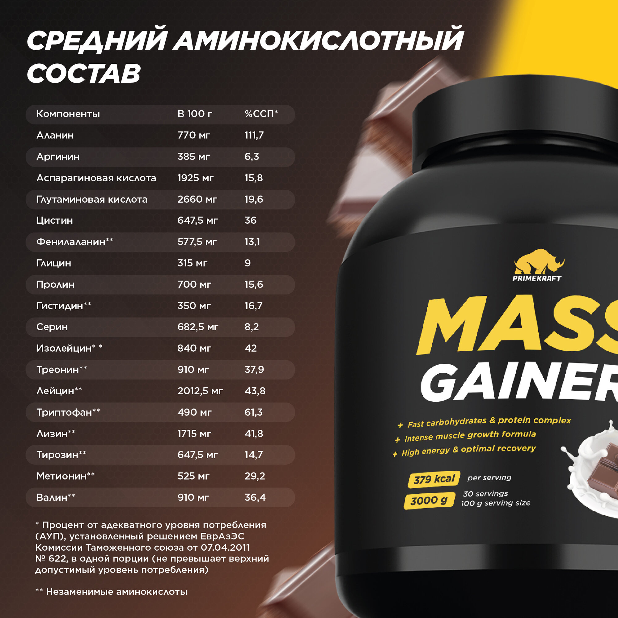 Prime Kraft Mass Gainer - 3000 грамм (банка), шоколад
