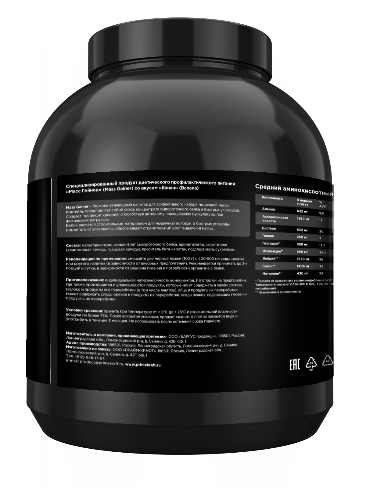 СохранитьГейнер белково-углеводный Prime Kraft MASS GAINER для набора массы - Банан банка 3000 гр интересное: