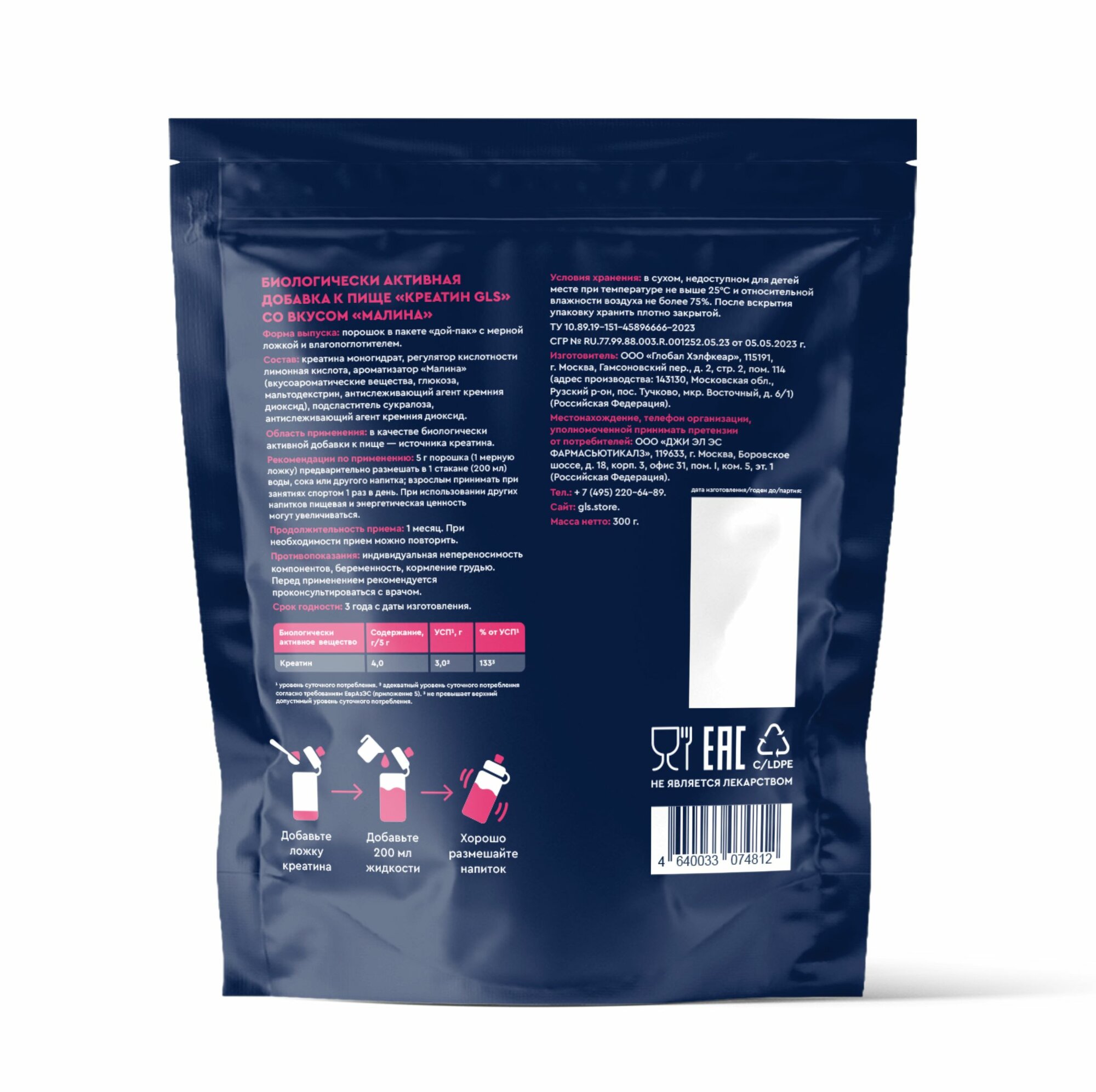Креатин для набора мышечной массы GLS со вкусом малины, 150 г 9703611
