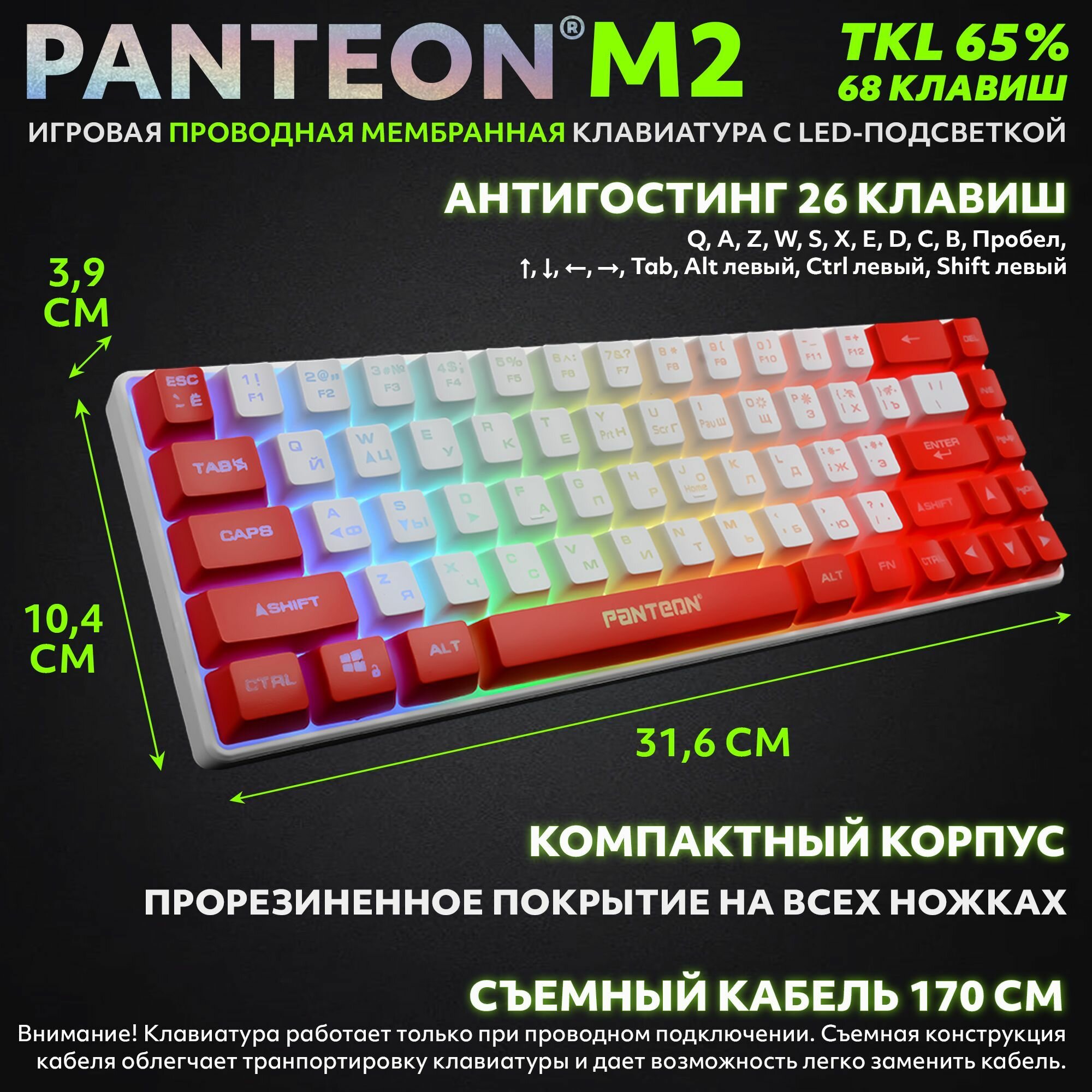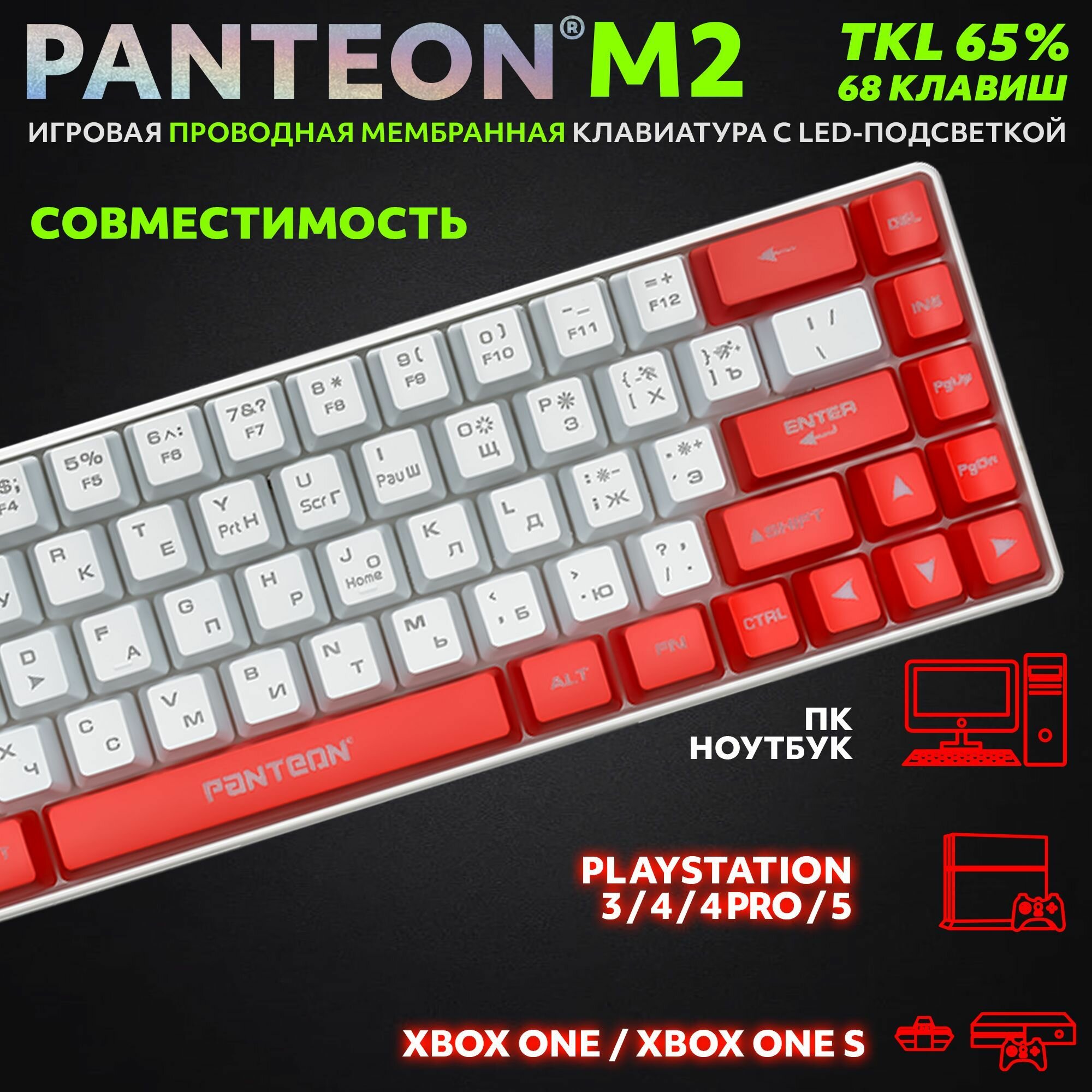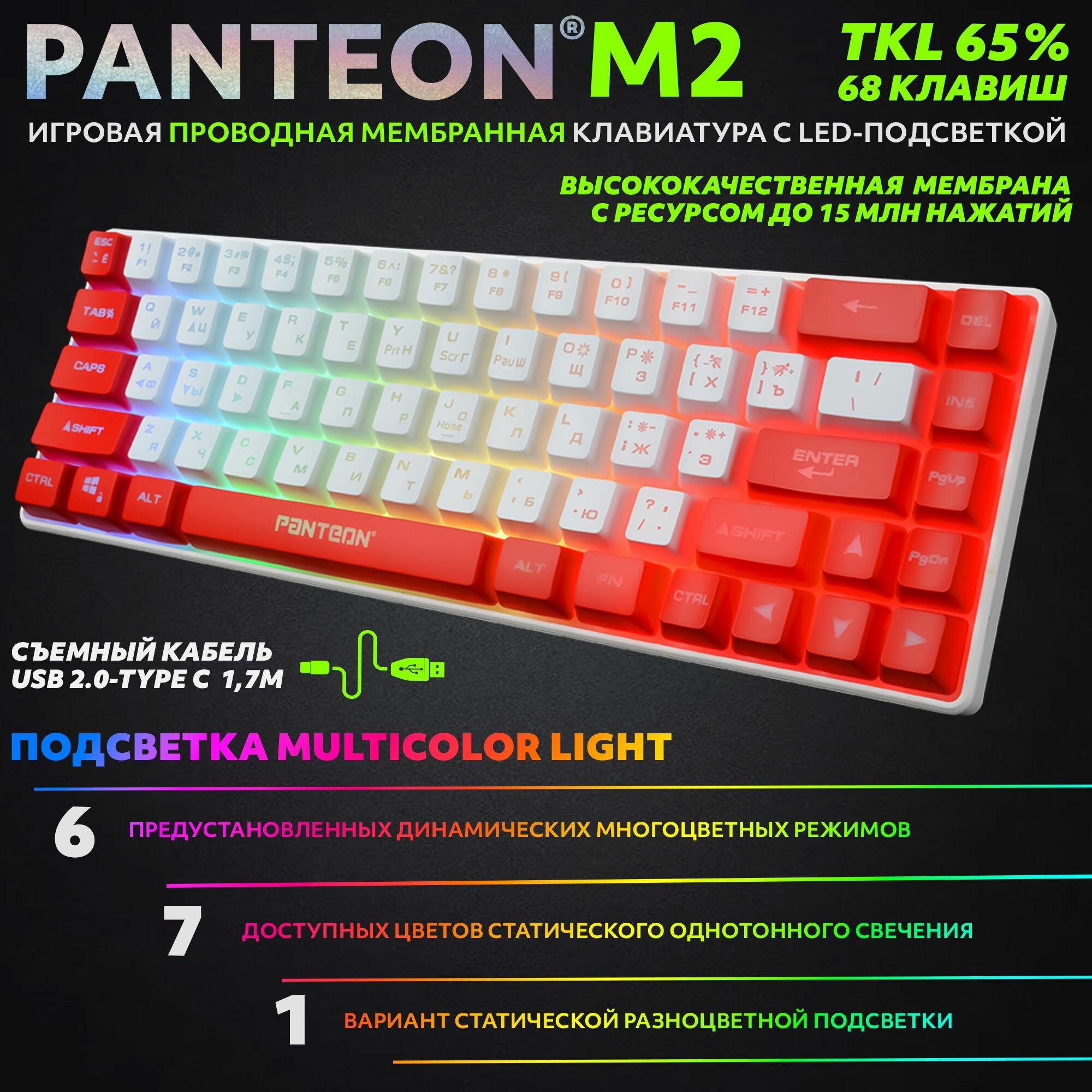 PANTEON M2 Red-White(06) Игровая мембранная TKL (65%) клавиатура с LED-подсветкой MULTICOLOR (68 кл, USB), цвет: красный-белый (06)
