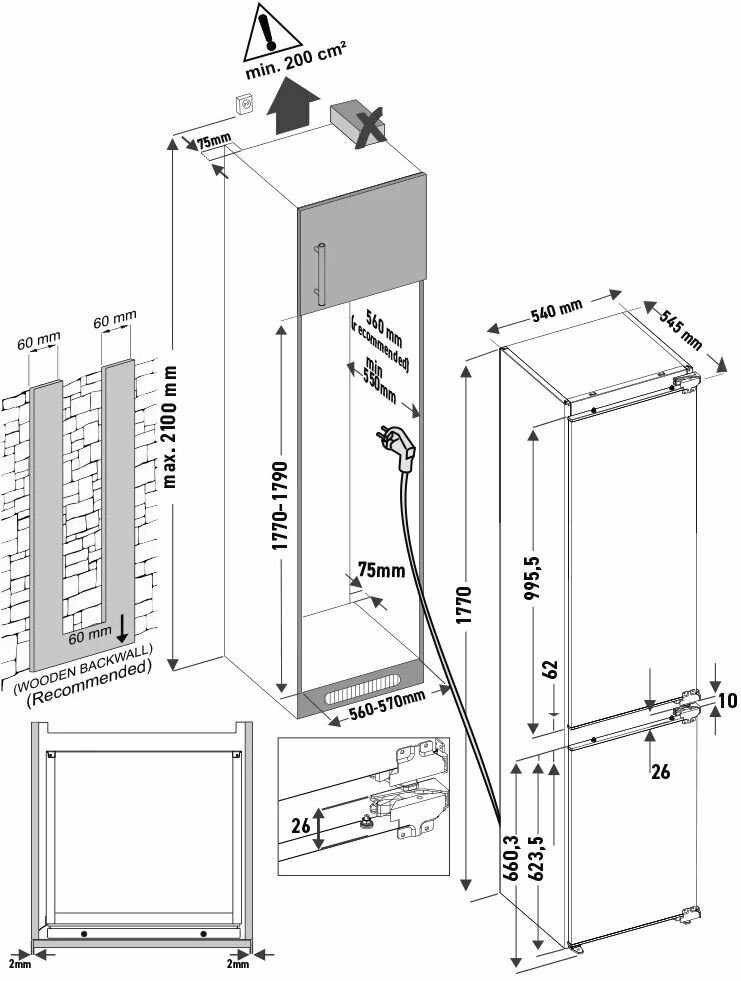 Встраиваемый двухкамерный холодильник Krona ZELLE RFR