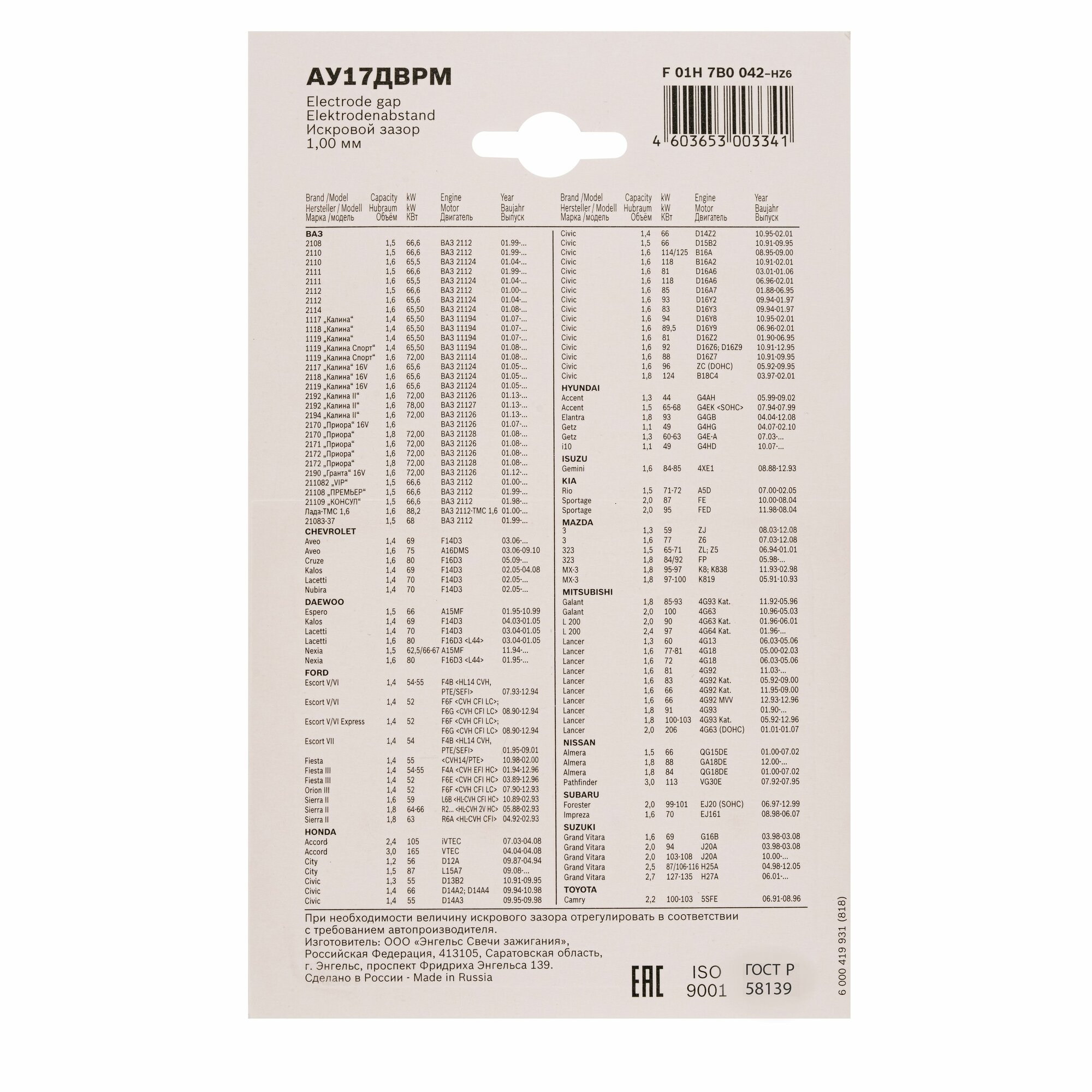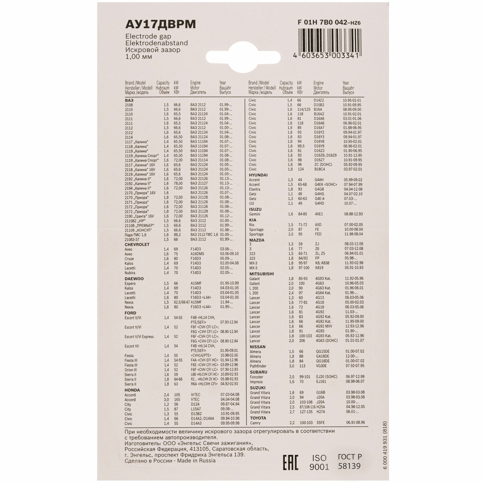 Свечи Эз 2112 (16 Клап.) (Блистер) Ау 17 Дврм (4 Шт.) ЭЗ арт. F01H7B0042HZ6