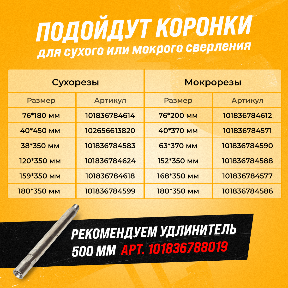 | Макс. диаметр сверления алмазной коронкой | 190 мм |