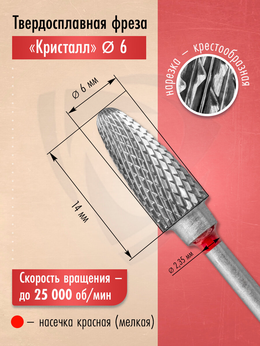 Фреза твердосплавная Конус, красная, (мелкая), 21360, Кристалл