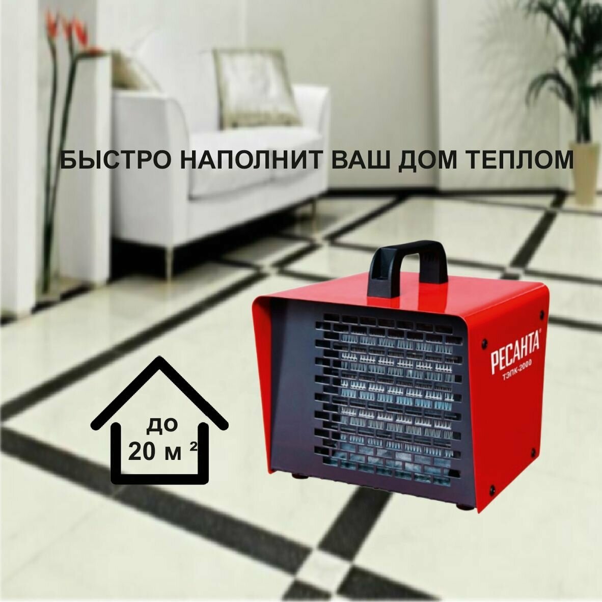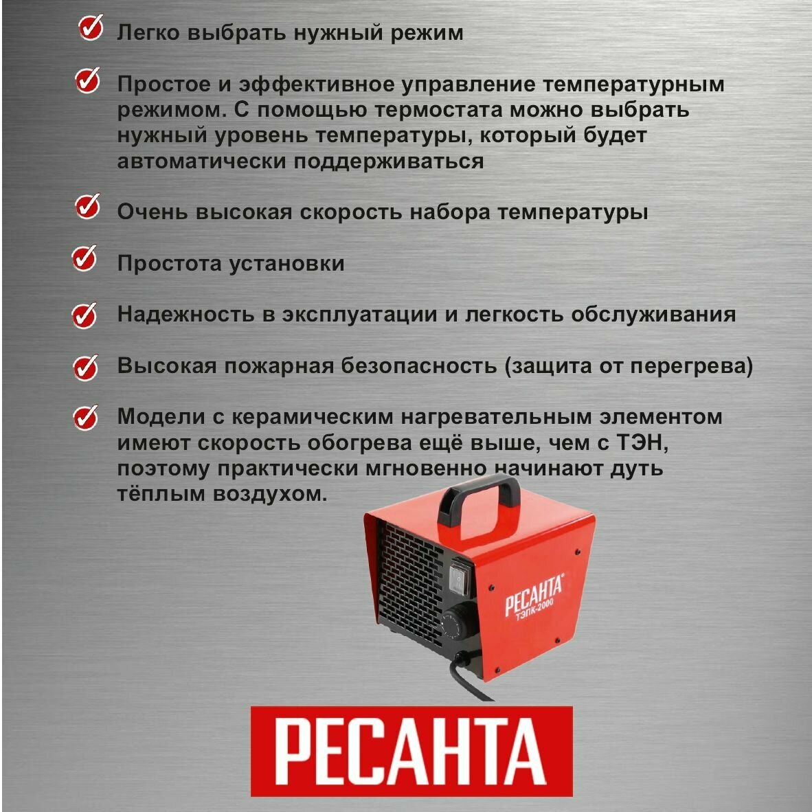 Тепловая электрическая пушка ТЭПК-2000 (керам.нагревательный элемент) Ресанта // 2 кВт; 2 режима; термозащита и терморегулятор интересное:
