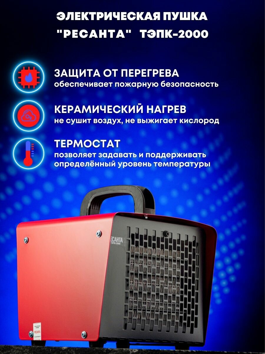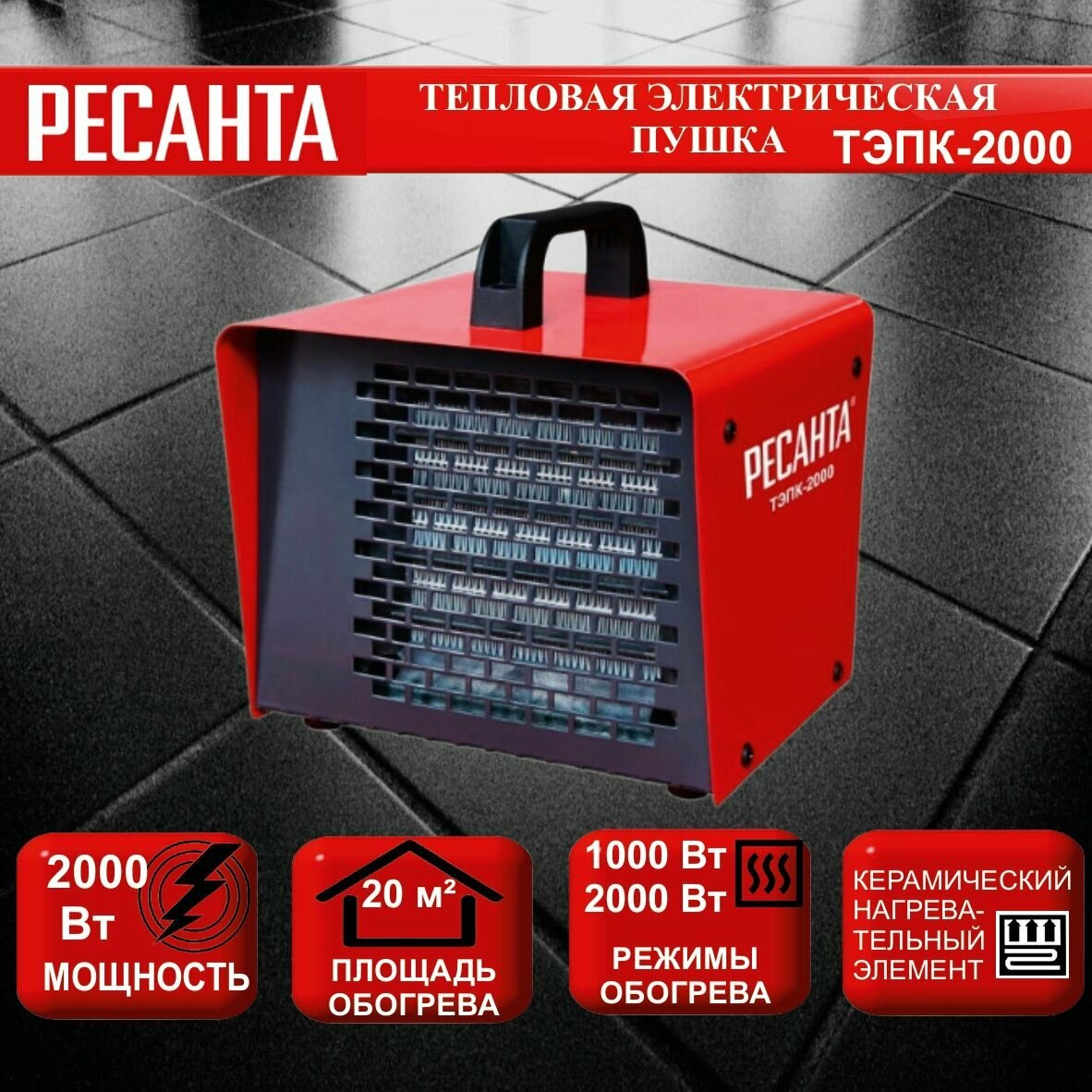 Купить Тепловая электрическая пушка ТЭПК-2000 (керам.нагревательный элемент) Ресанта // 2 кВт; 2 режима; термозащита и терморегулятор