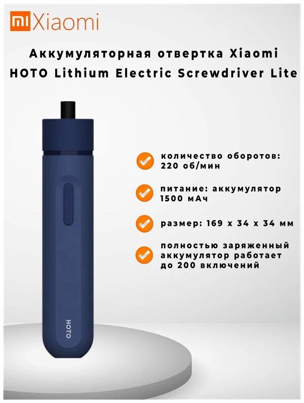 | Комплектация | Отвертка аккумуляторная 5В HOTO Li-ion Screwdriver-Lite (QWLSD007) |