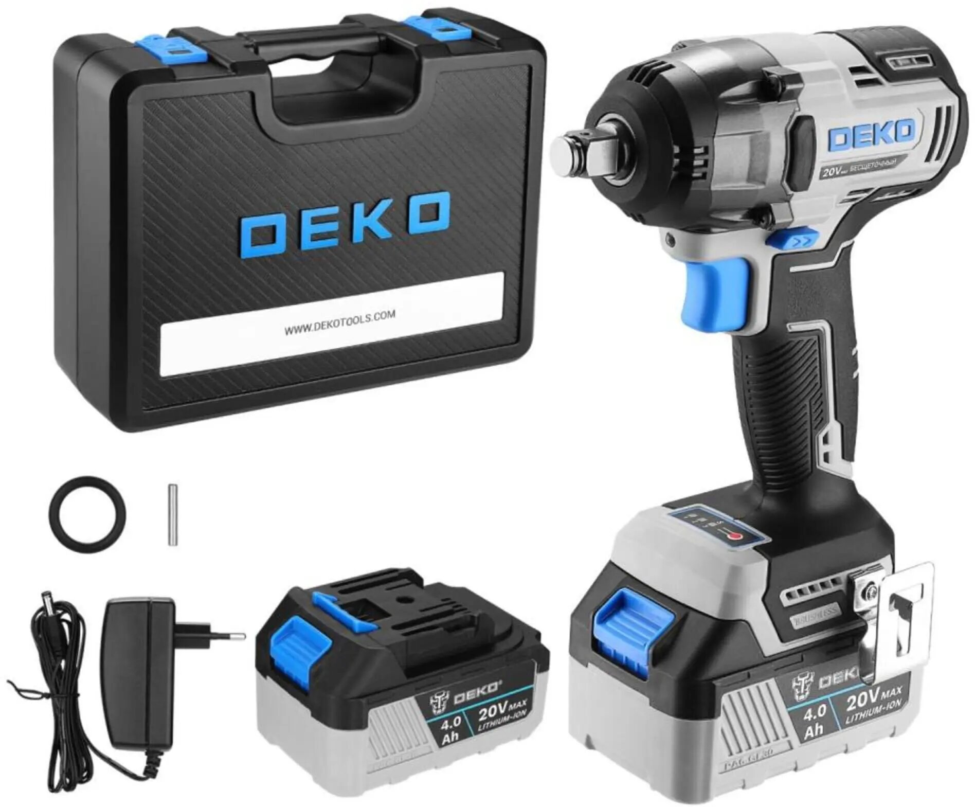 Гайковерт аккумуляторный бесщеточный DEKO DKIS, 20В, 2*4.0Ач, 400Нм, в кейсе