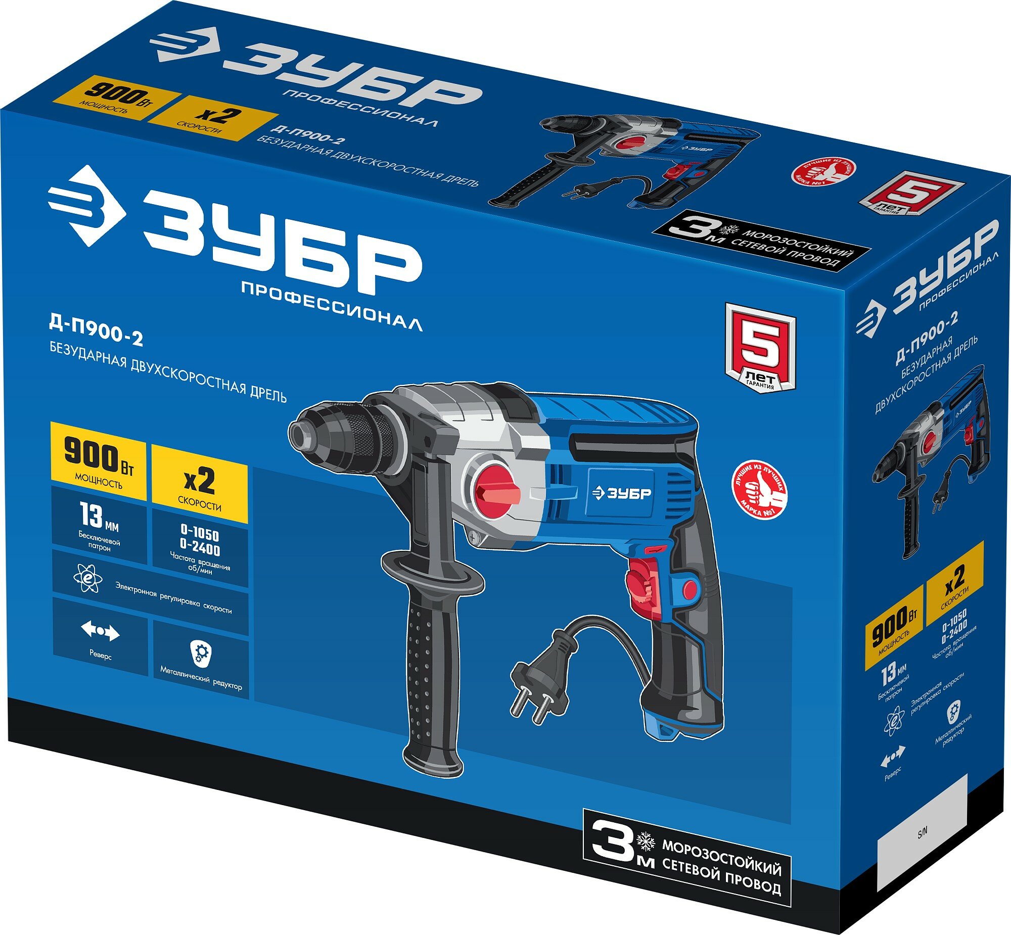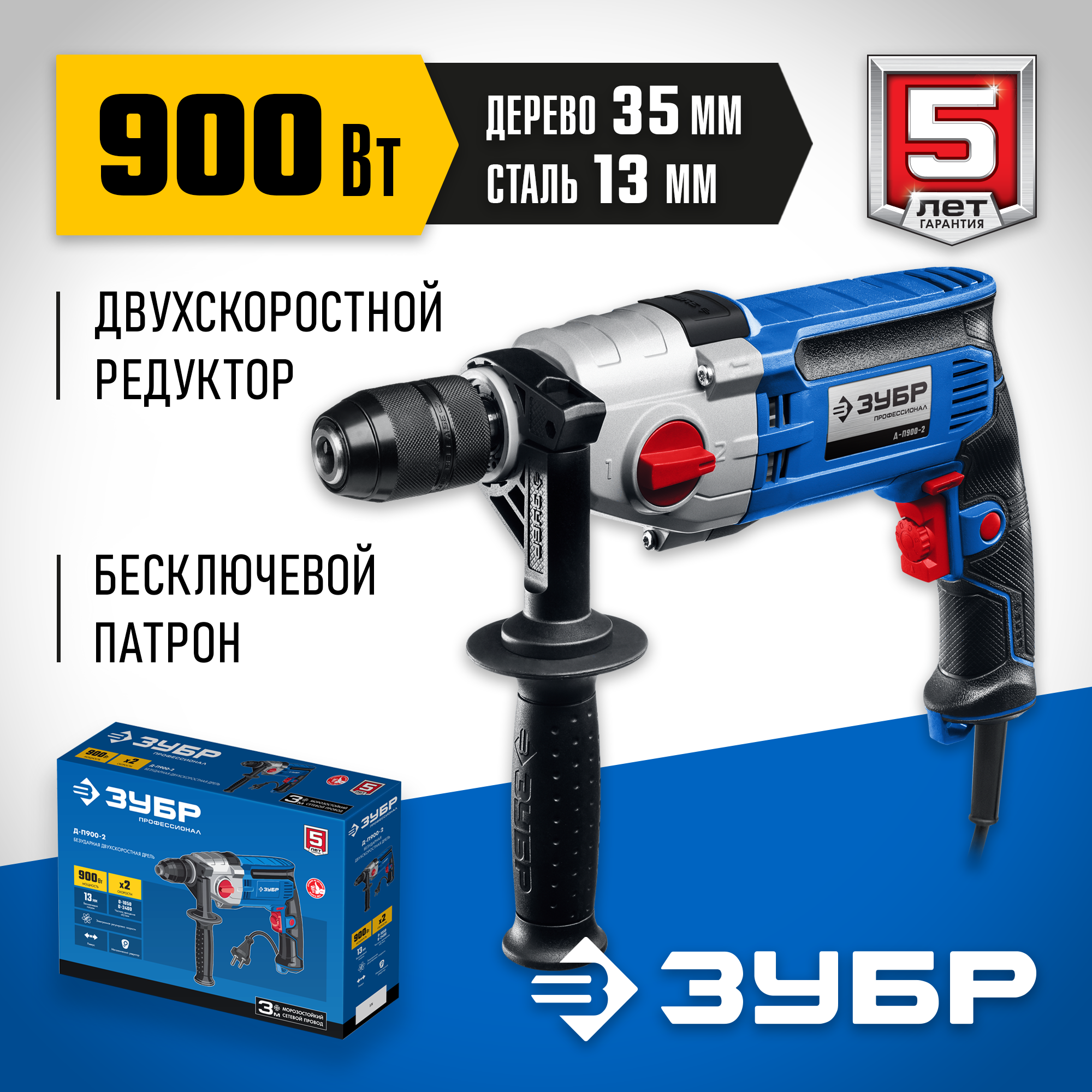 ЗУБР 900 Вт, 13 мм, безударная дрель, 2-скоростная, мет. корпус, Профессионал (Д-П900-2)