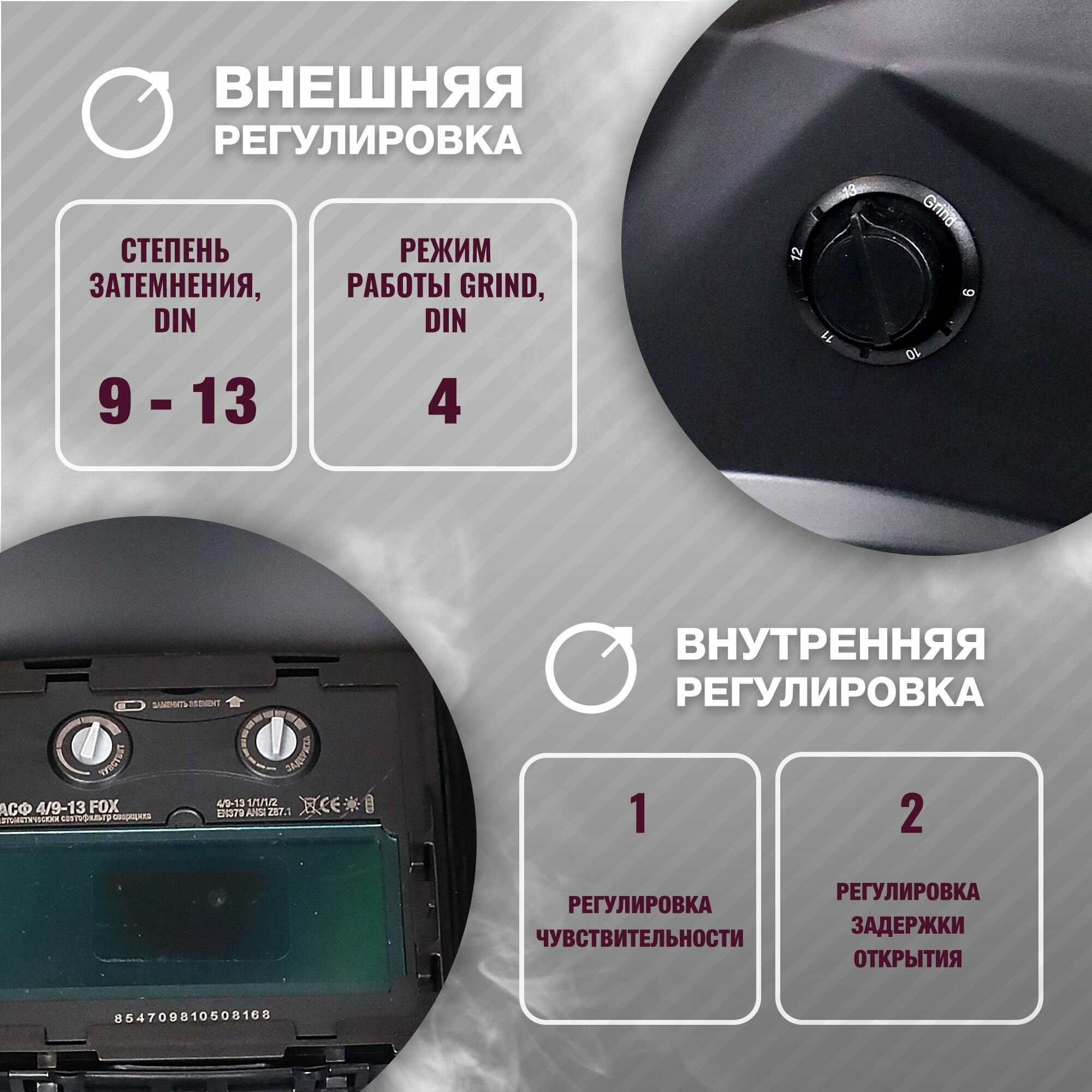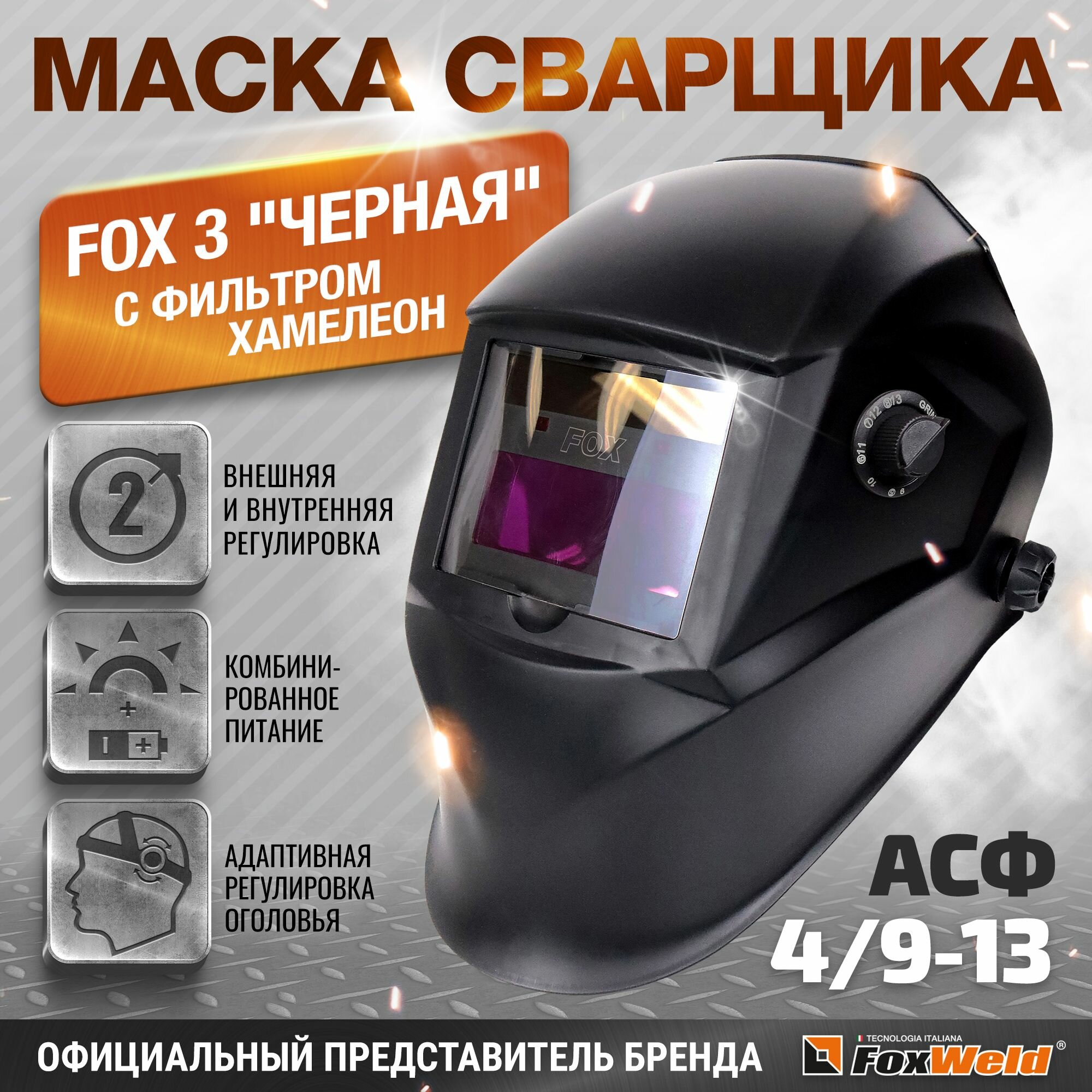 Маска сварщика FOX 3 "черная" с фильтром "хамелеон" (Ф-Р АСФ 4/9-13 со внешней и внутренней регулировкой) интересное: