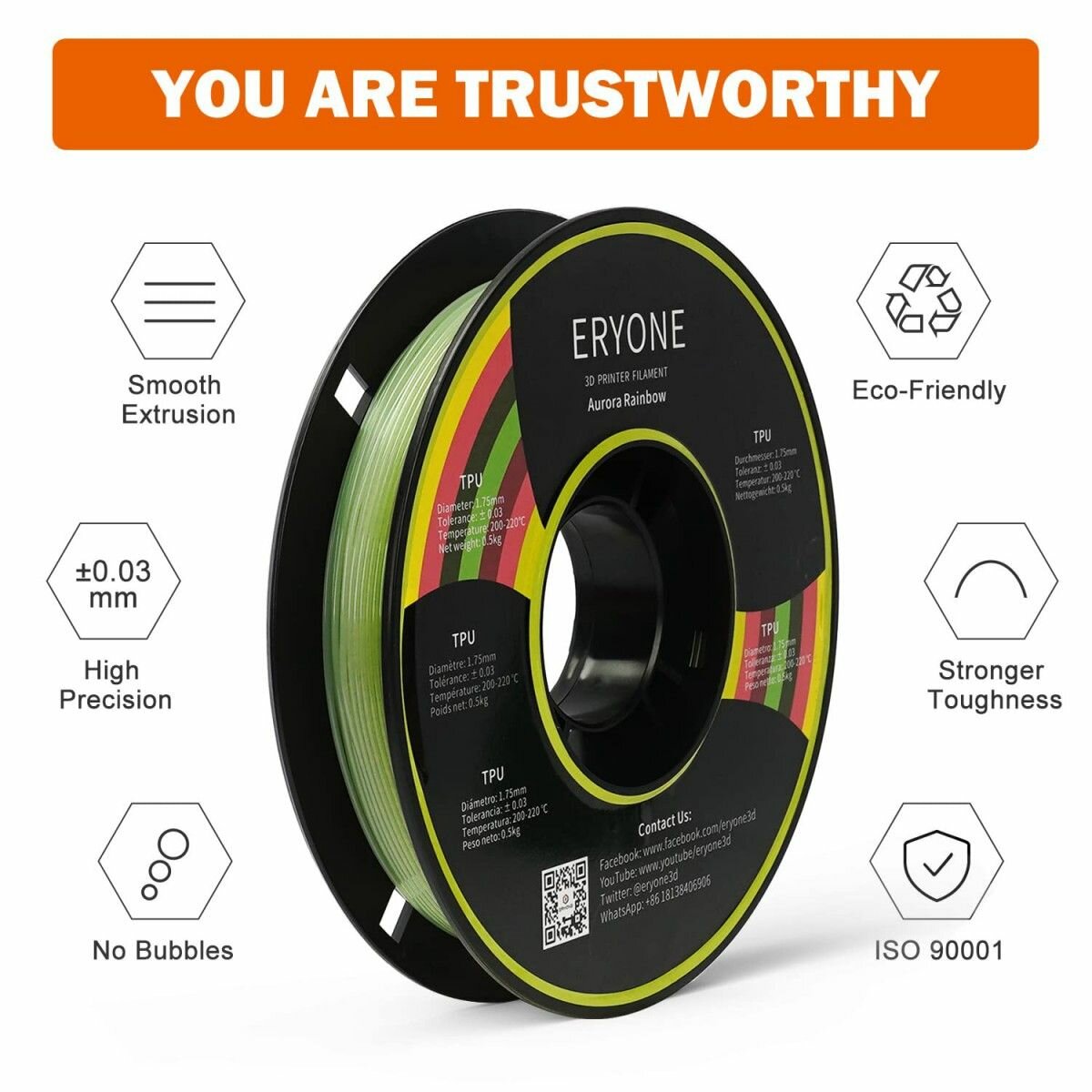 Ниже Вы можете прочитать отзывы на TPU пластик для 3D принтера Light Aurora Rainbow 1,75 мм 0,5 кг (Eryone) прозрачный разноцветный, ознакомится с подробными характеристиками, посмотреть интересные обзоры и фотографии на TPU пластик для 3D принтера Light Aurora Rainbow 1,75 мм 0,5 кг (Eryone) прозрачный разноцветный.