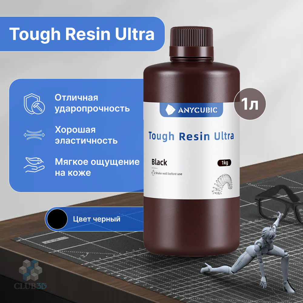 Купить Фотополимерная смола Anycubic Ultra Tough Resinдля 3D принтера 405нм Черный (Black) 1 литр