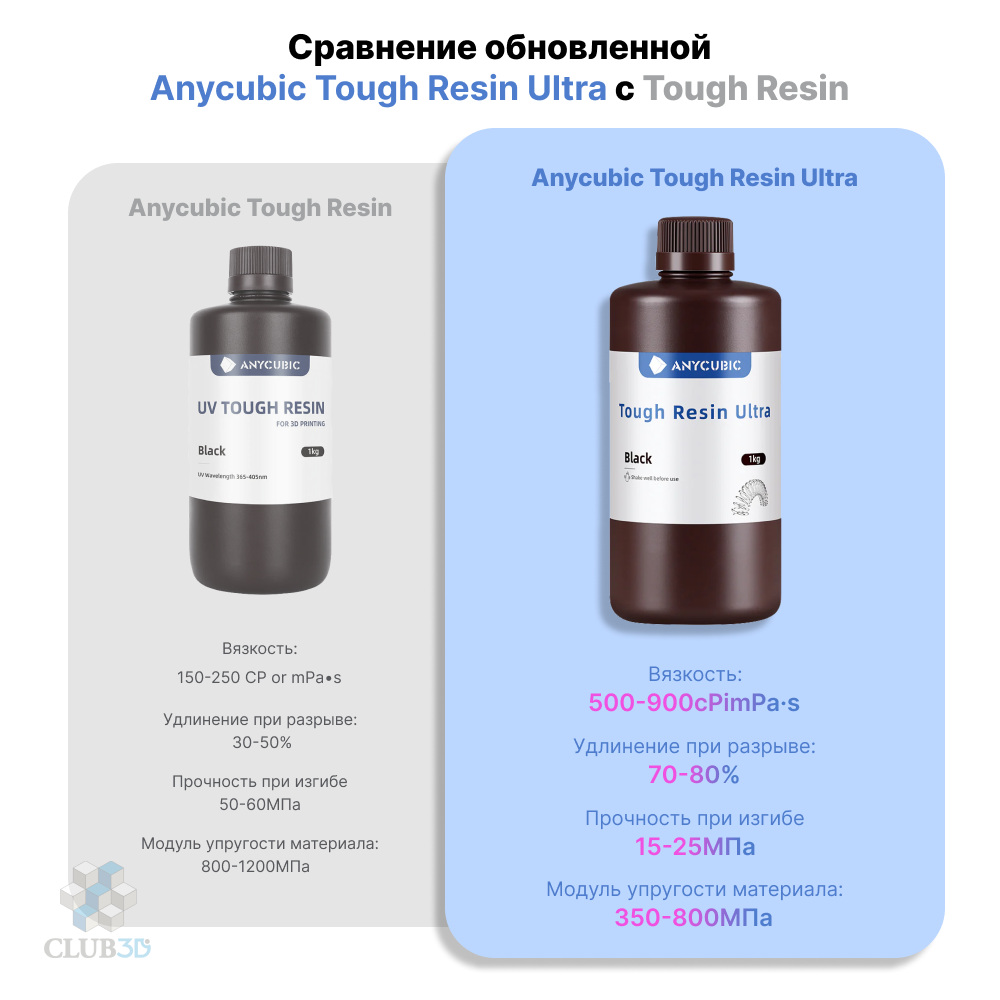 СохранитьФотополимерная смола Anycubic Ultra Tough Resinдля 3D принтера 405нм Черный (Black) 1 литр интересное: