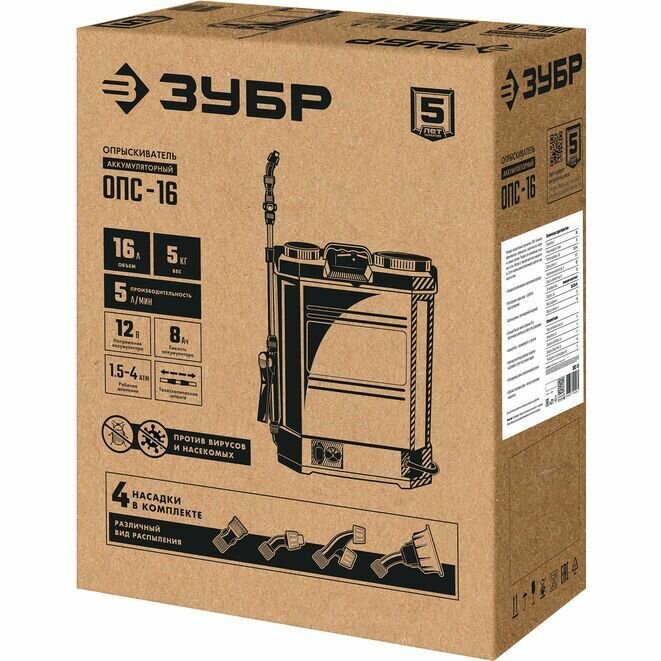 ЗУБР 16 л, аккумуляторный опрыскиватель (ОПС-16)