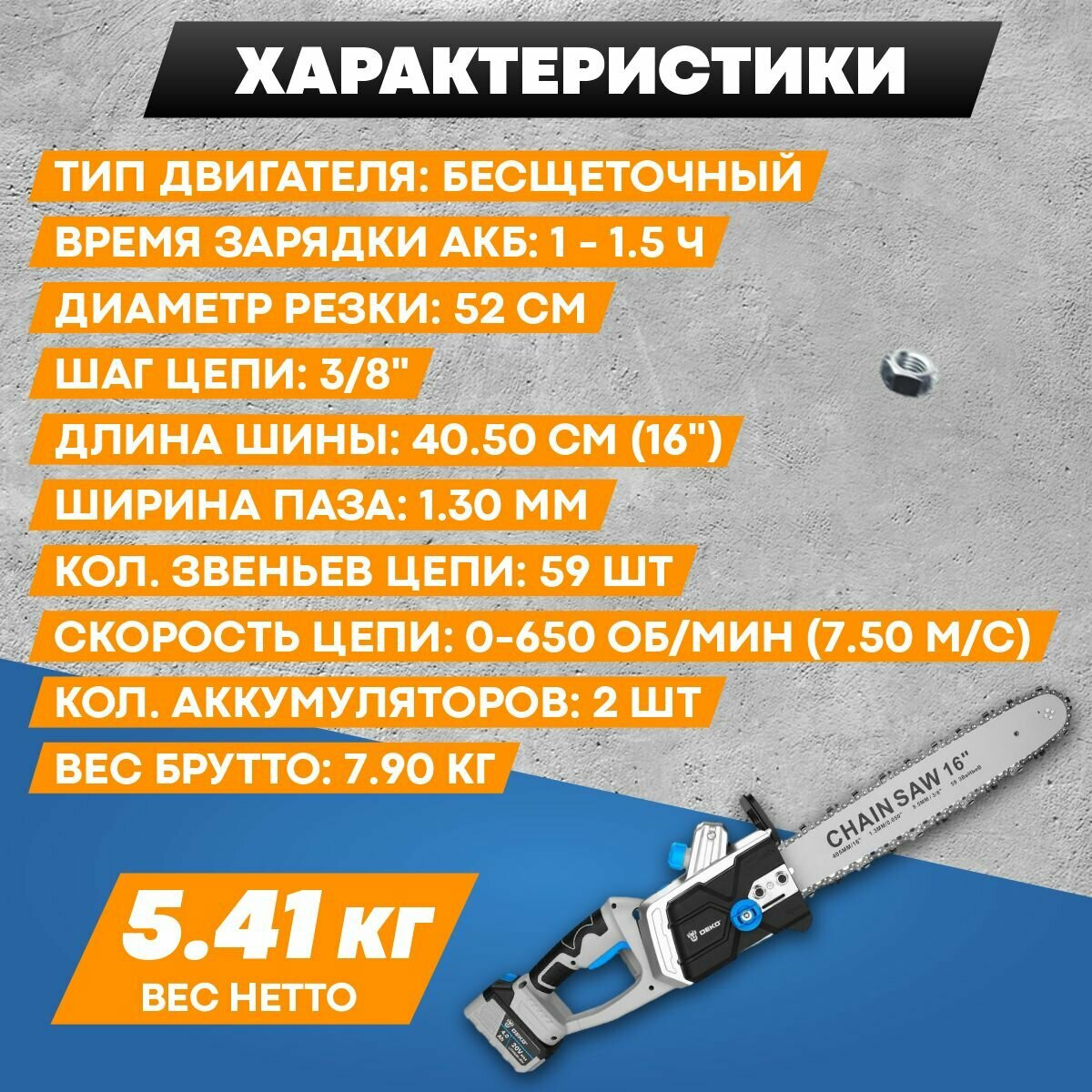 Пила цепная аккумуляторная DEKO DKCHS 40 PRO 063-4357