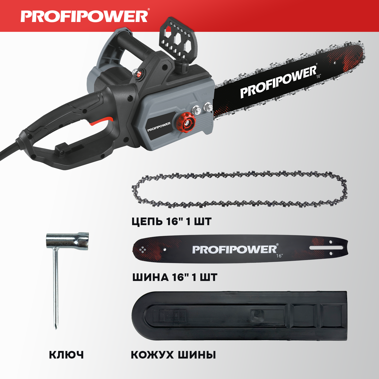 Пила цепная Profipower EC-2200, 16", 2200 Вт, с механической подачей масла