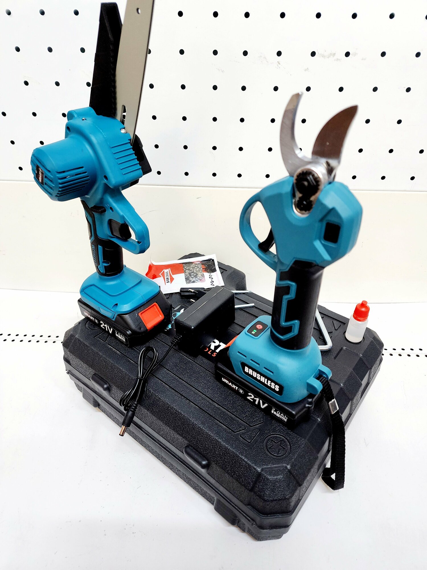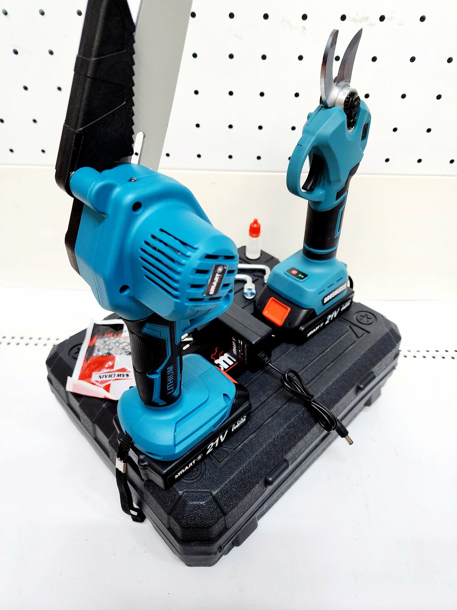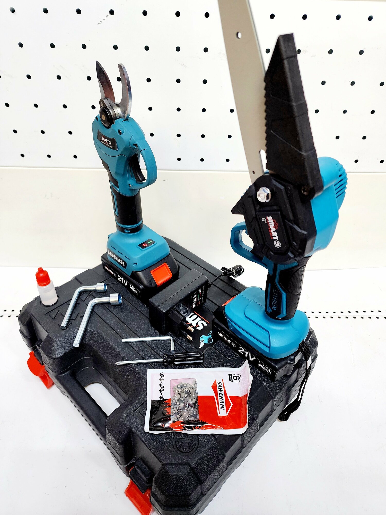 Купить Набор садового аккумуляторного инструмента секатор + цепная пила 6" SMART(21В, 2Ач *2, 12000/780об/мин, 25мм, 1/4-6"/15см, кейс)