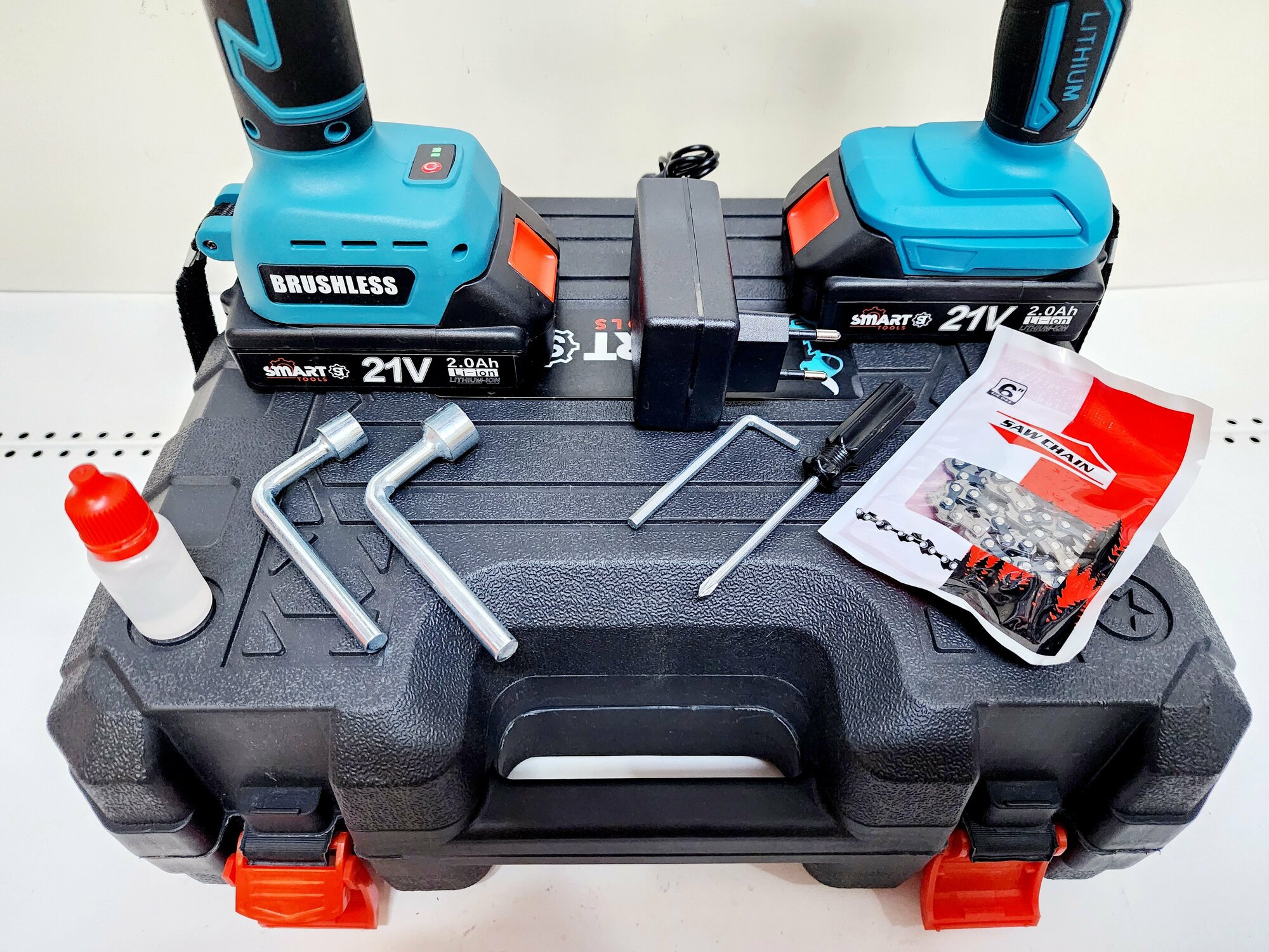 Набор садового аккумуляторного инструмента секатор + цепная пила 6" SMART(21В, 2Ач *2, 12000/780об/мин, 25мм, 1/4-6"/15см, кейс) интересное: