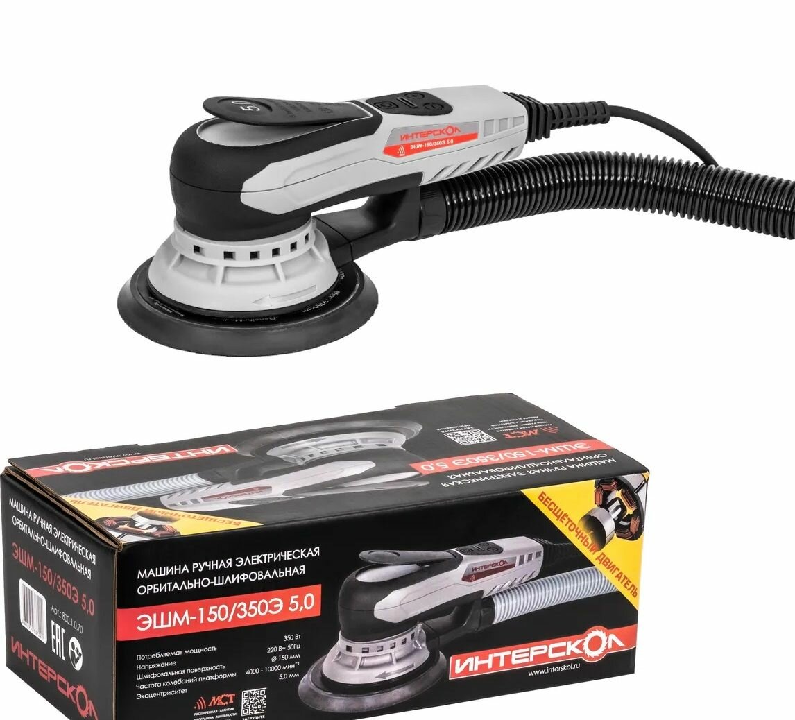 Шлифмашина эксцентриковая бесщеточная( орбитальная ) Интерскол ЭШМ-125/350Э 5,0 (798.1.0.70), с регулировкой оборотов, подключения к пылесосу