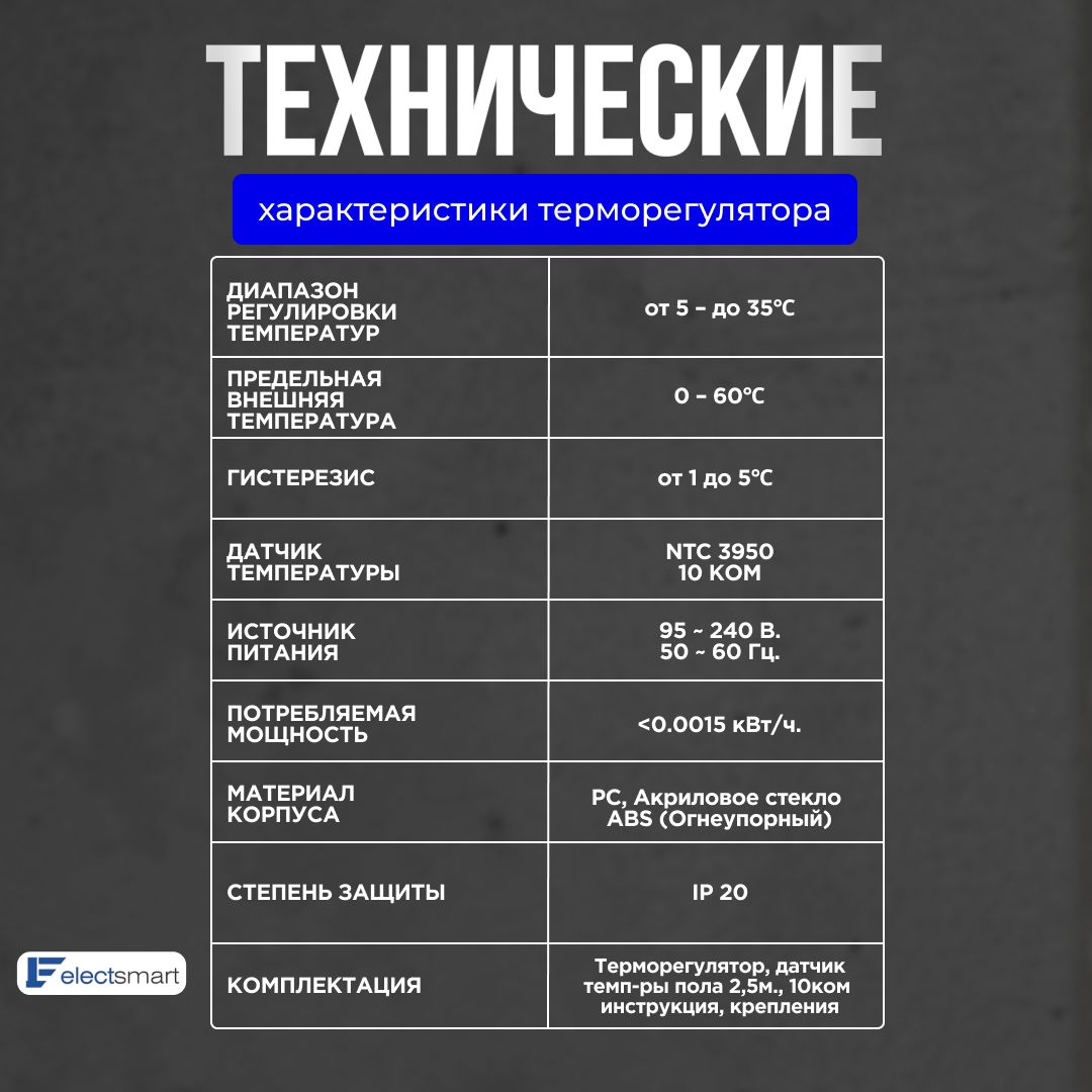 | Подходит для электрического теплого пола | есть |
