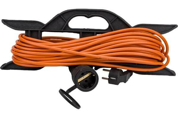 Купить Уличный удлинитель сетевой 20 м с одной розеткой на рамке с заземлением для садовых и строительных электроинструментов, ПВС 3х1 10А, 2200Вт, IP44