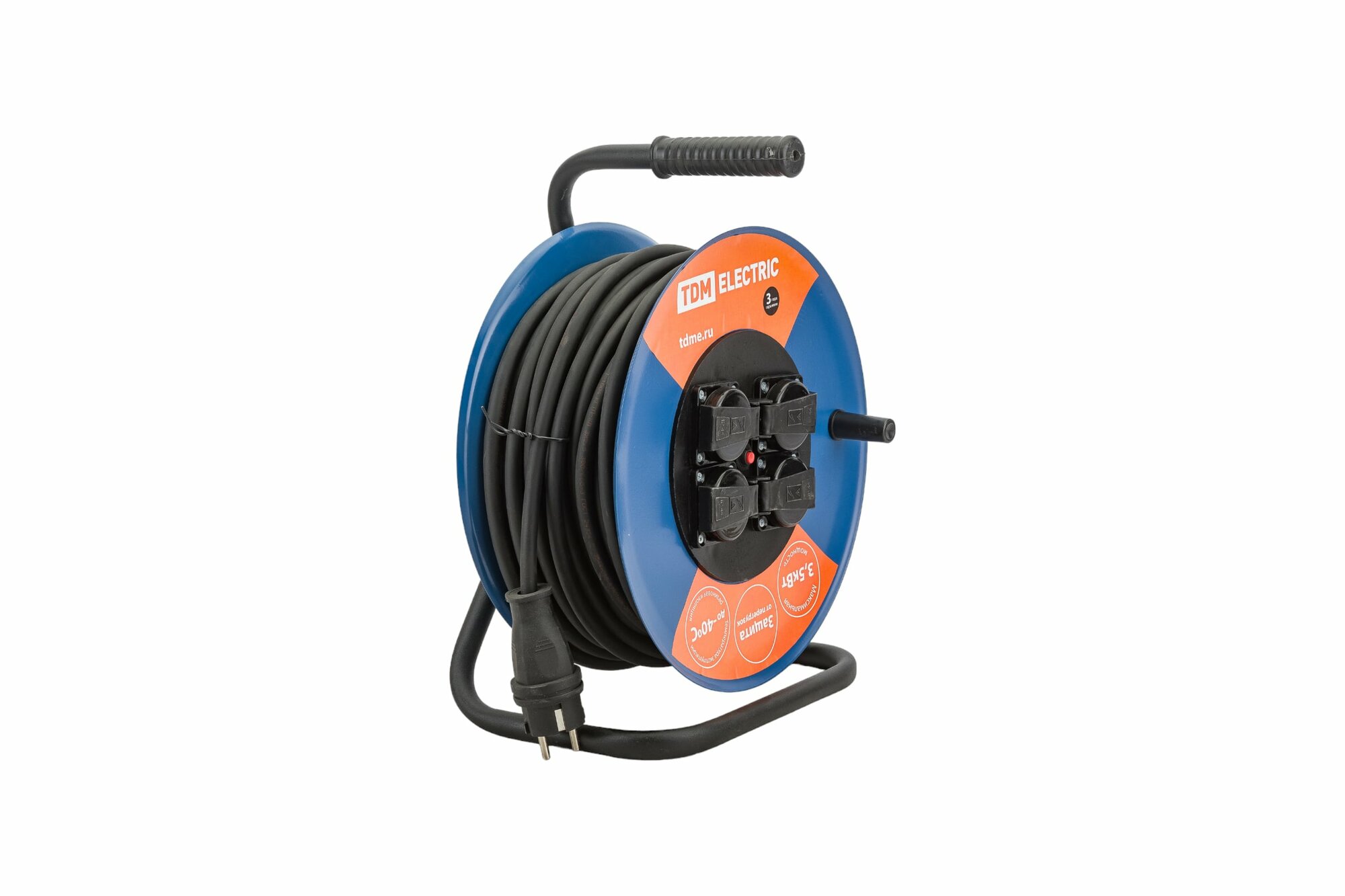 Купить Удлинитель силовой Tdm Electric УХз16-004 (метал. катушка, А3, 4 места IP44/30м КГ 3х2,5), SQ1301-0170