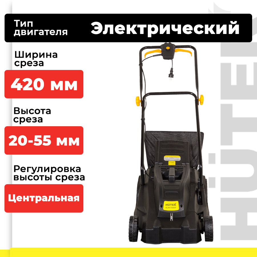 Купить Электрическая газонокосилка Huter ELM-1600T, 1600 Вт, 42 см