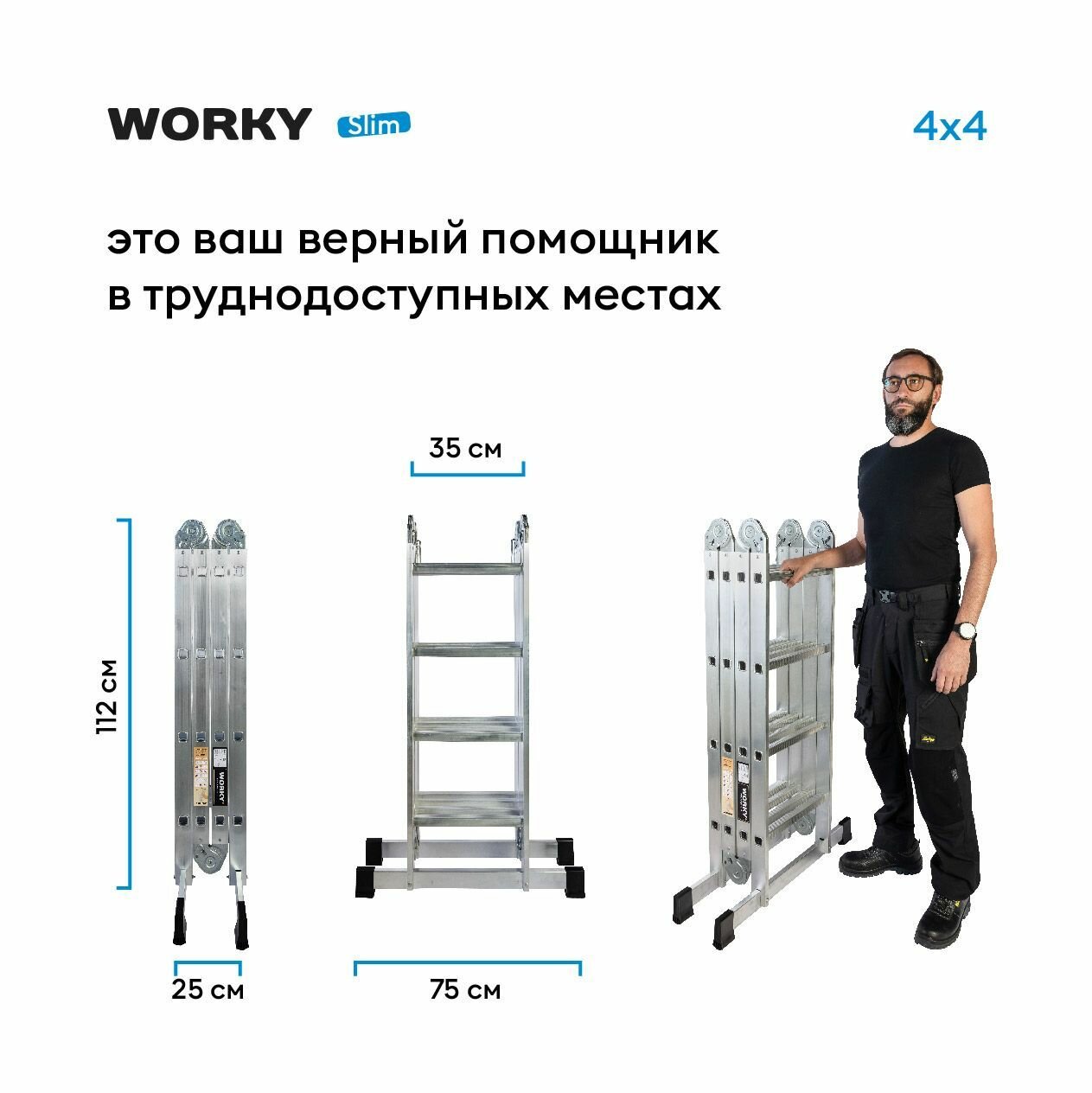 Лестница трансформер 4х4 WORKY Slim, 4 секции по 4 ступени интересное: