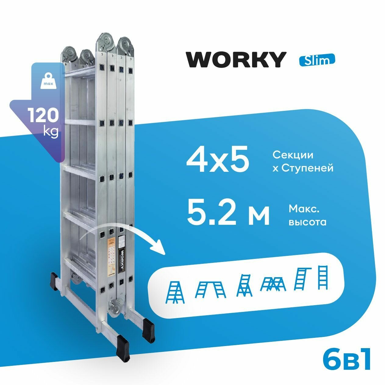 Купить Лестница трансформер 4х5 WORKY Slim, 4 секции по 5 ступеней