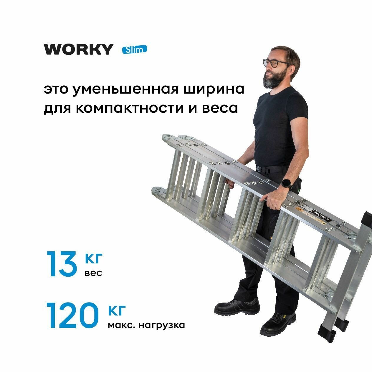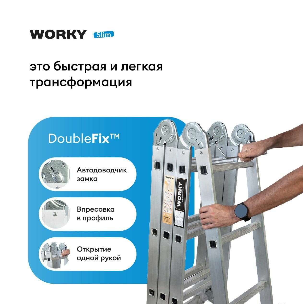 Лестница трансформер 4х5 WORKY Slim, 4 секции по 5 ступеней интересное: