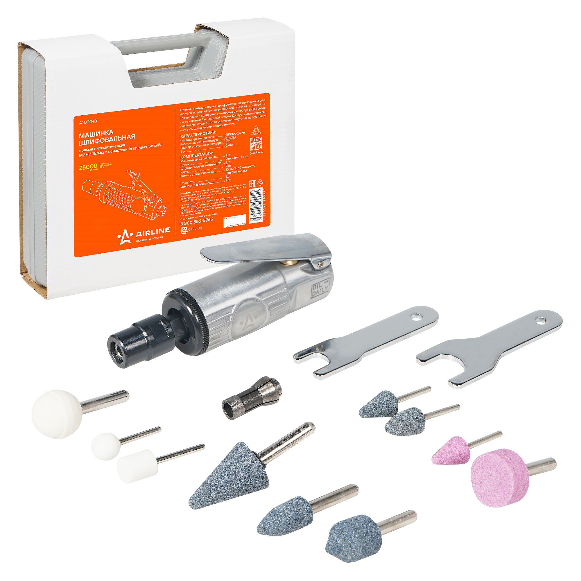Машинка шлифовальная прямая пневматическая мини с оснасткой 16 предметов кейс (ATBR040) airline 1шт