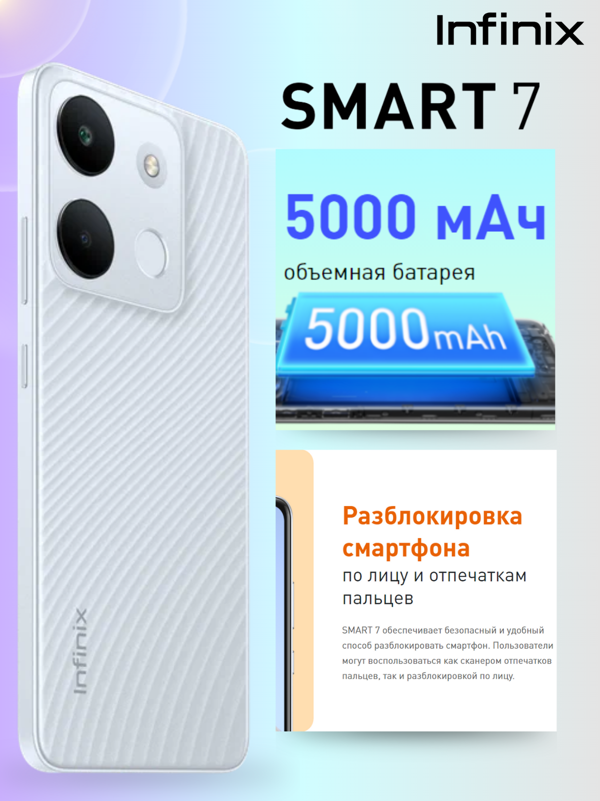 Смартфон Infinix SMART 7 HD 2/64 ГБ Global для РФ, 2 nano SIM, Silk Blue