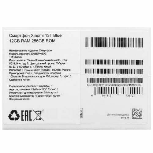 Смартфон Xiaomi 13T, 12/256Gb Global, Alpine Blue