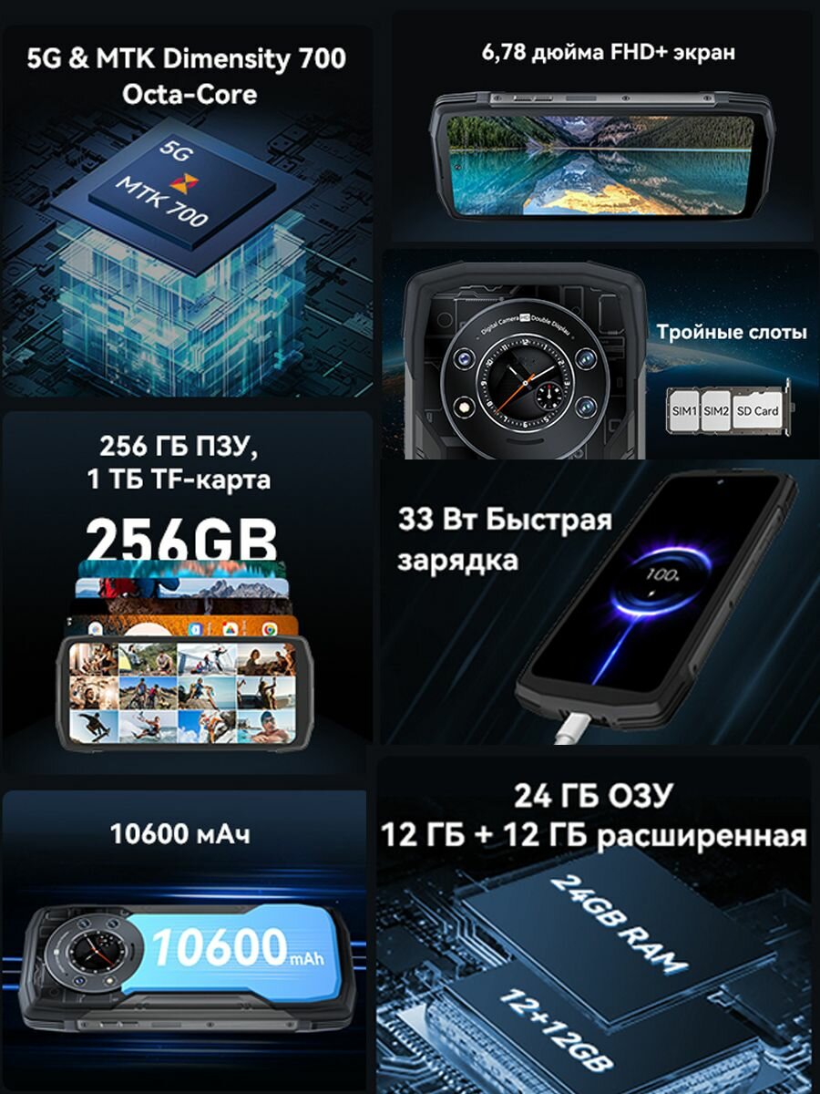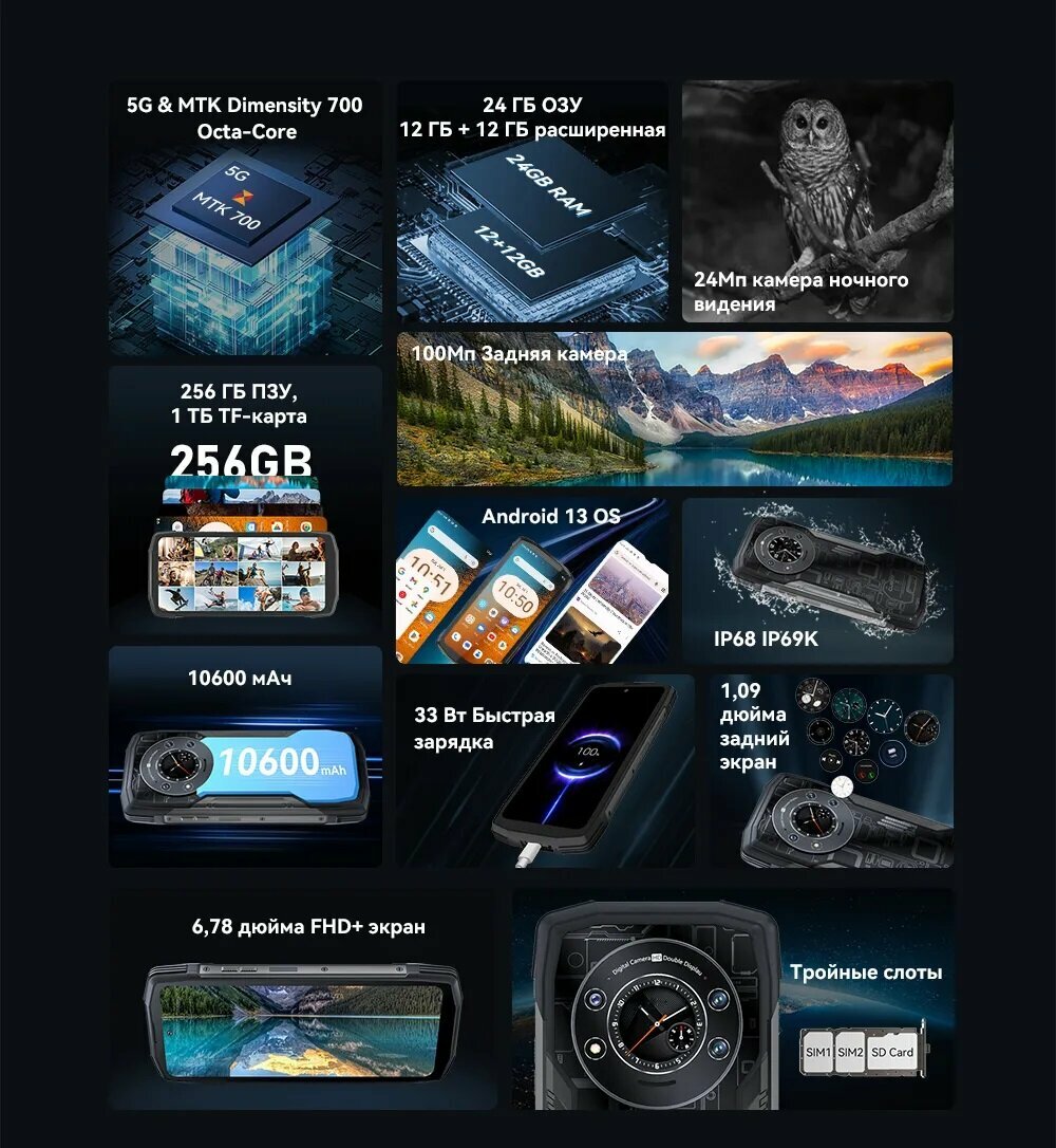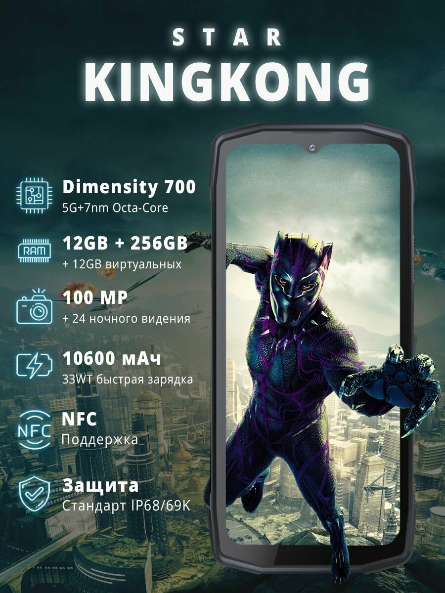 Смартфон Cubot KingKong Star 5G, 12/256ГБ, global, Cubot, KingKong Star 5G, Смартфон, Черный, 12ГБ, 256ГБ, global, Новый