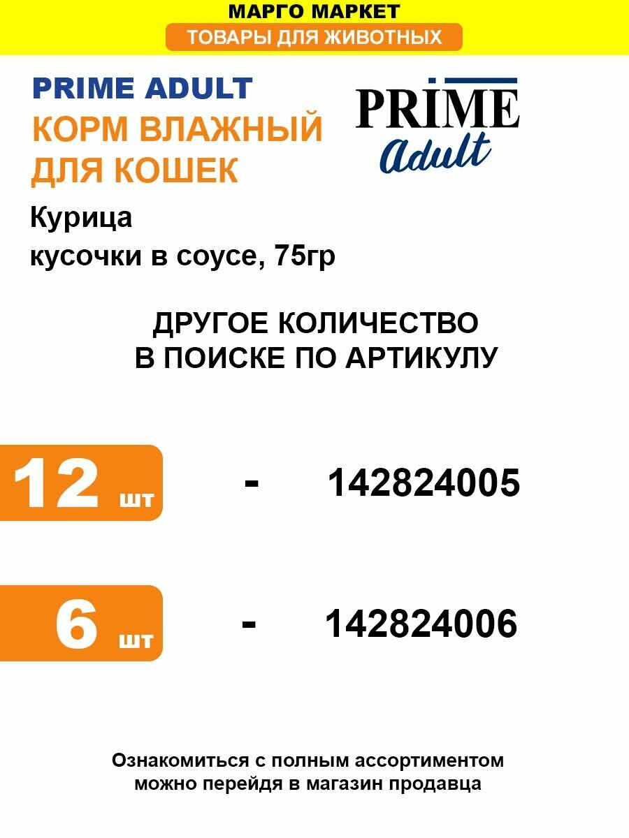 Ниже Вы можете прочитать отзывы на PRIME MEAT консервы для кошек Курица кусочки в соусе 24х75гр, ознакомится с подробными характеристиками, посмотреть интересные обзоры и фотографии на PRIME MEAT консервы для кошек Курица кусочки в соусе 24х75гр.