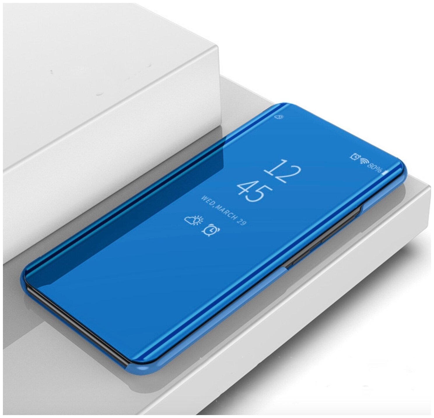 Чехол-книжка Чехол.ру для Samsung Galaxy A32 с дизайном Clear View Cover с полупрозрачной пластиковой крышкой с зеркальной поверхностью синий интересное: