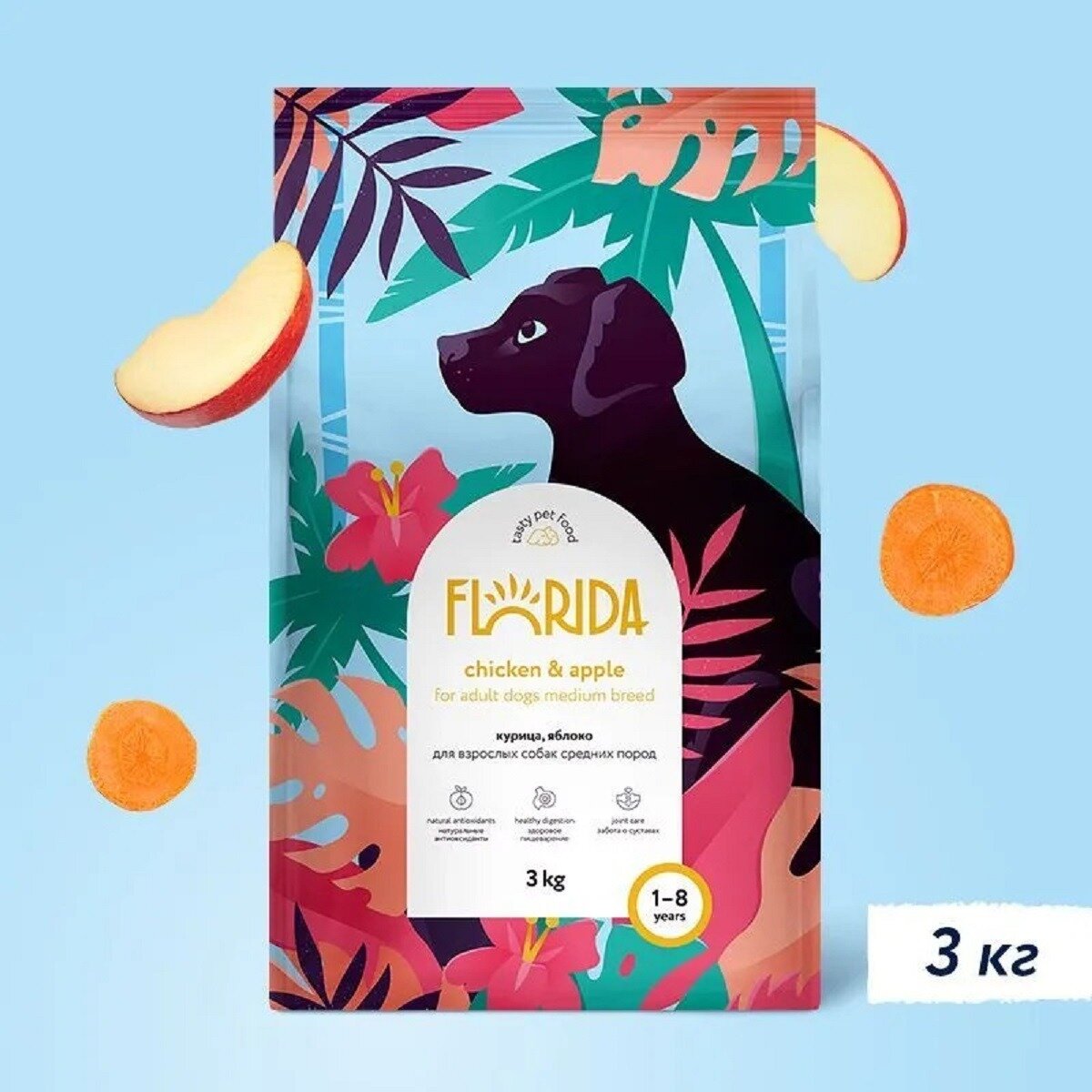 Купить Florida сухой корм для взрослых собак средних пород Курица и яблоко, 3 кг.