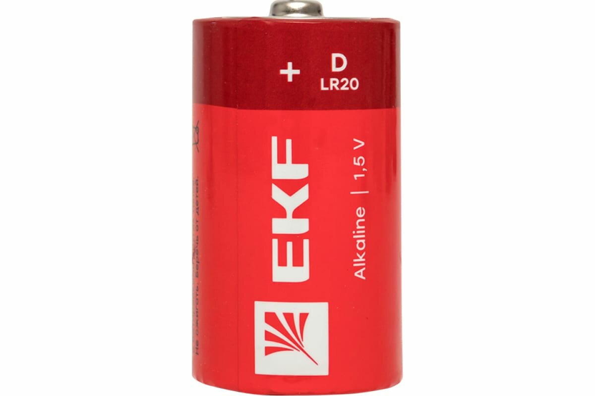 Купить Элемент питания алкалиновый EKF, тип D, LR20, 1,5 В, 2 шт