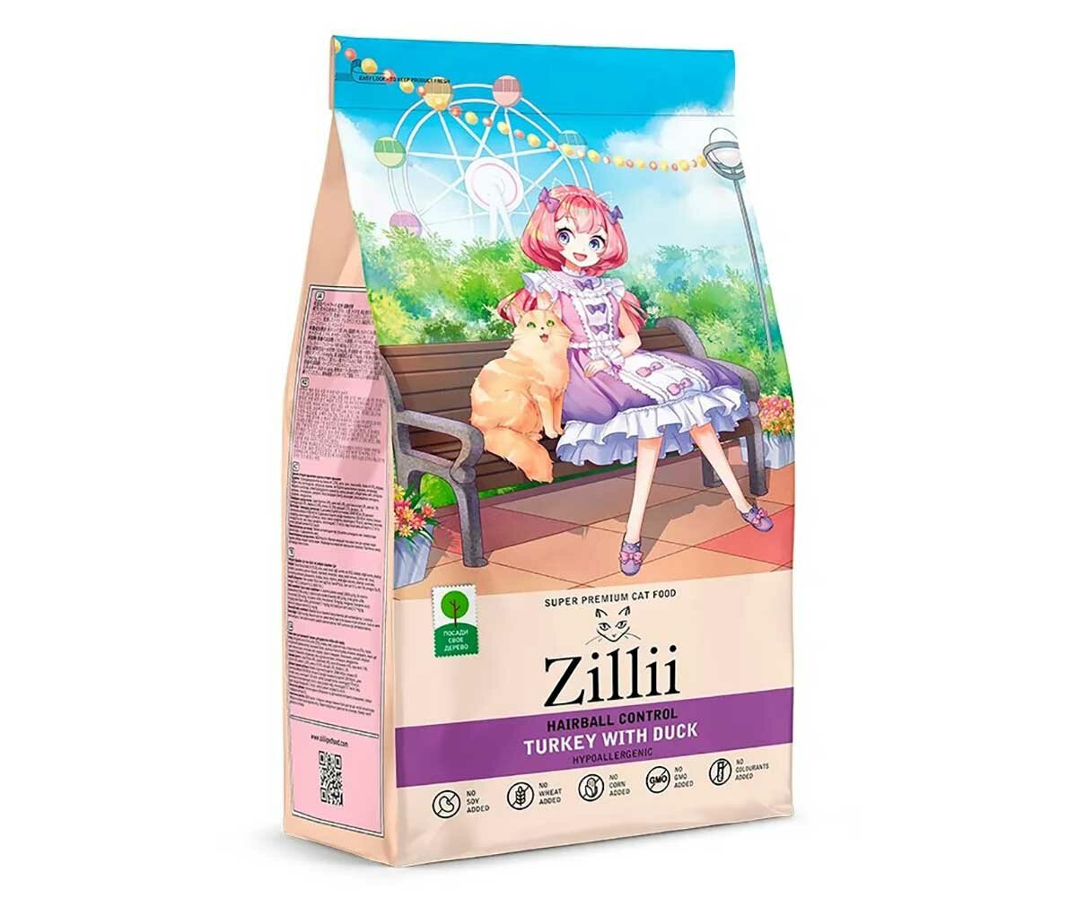 Zillii Hairball Control Для взрослых кошек контроль образования комочков шерсти в желудке с индейкой и уткой 2 кг