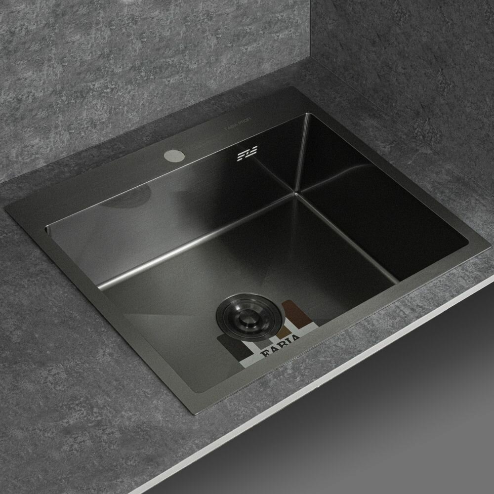 Fabia profi 60503dg мойка врезная 60х50 см графит, декор, толщина 3,0х0,8 мм, глубина 200 мм+большой сифон с переливом+корзина мойка врезная