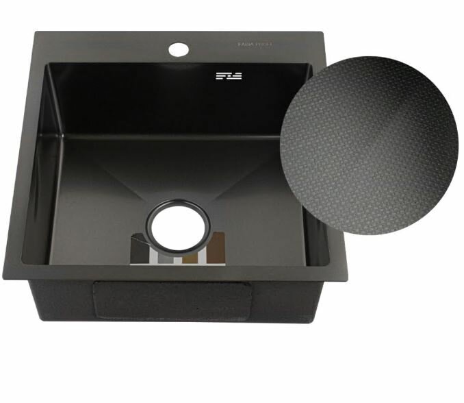 Мойка нержавеющая врезная 50х50 графит декор FABIA Profi (3.0х200) выпуск 3 1/2 с сифоном, с коландером