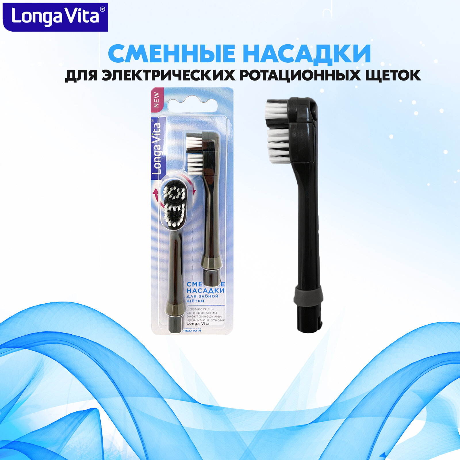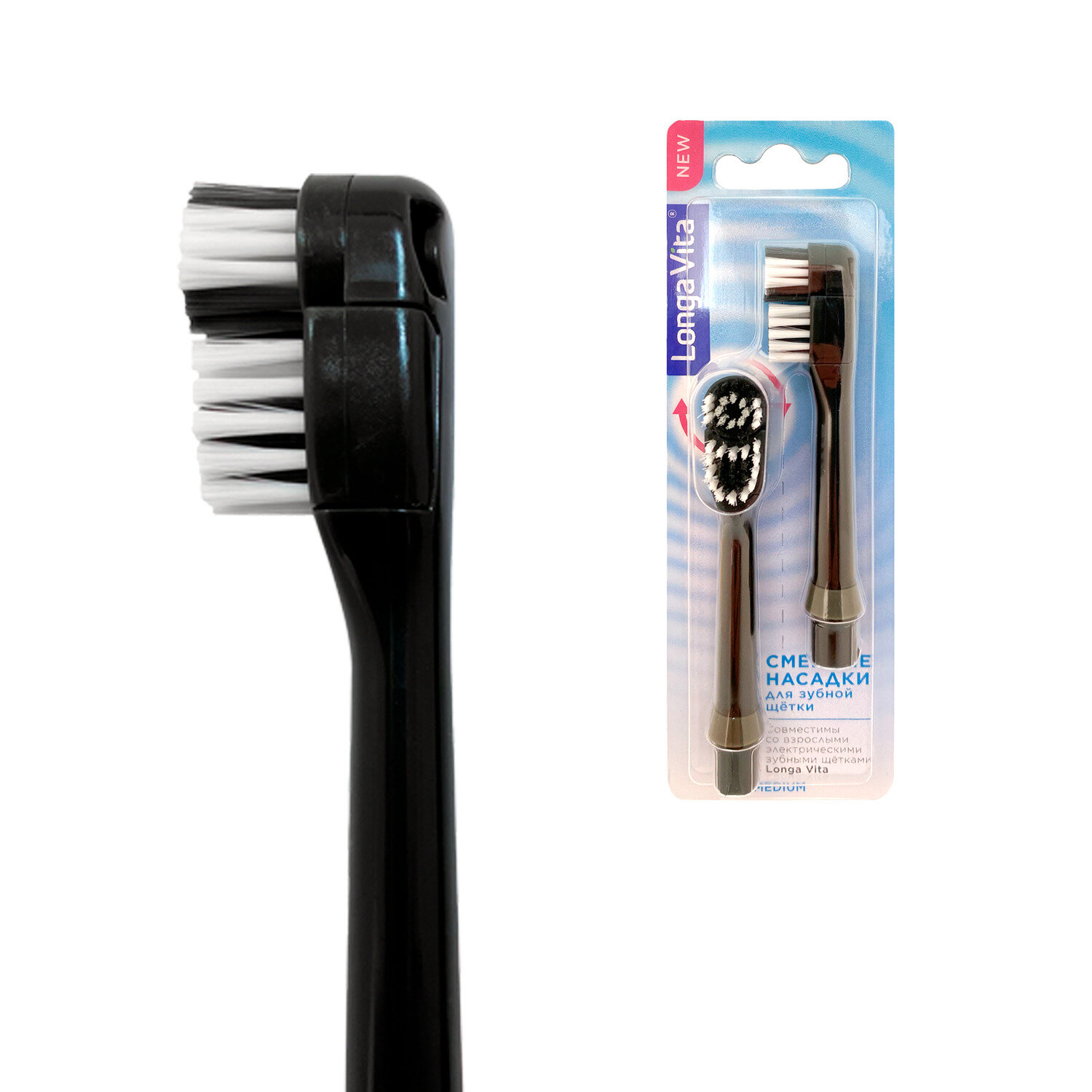 Насадки сменные для электрической зубной щётки Longa Vita, щетина средней жёсткости, чёрная интересное: