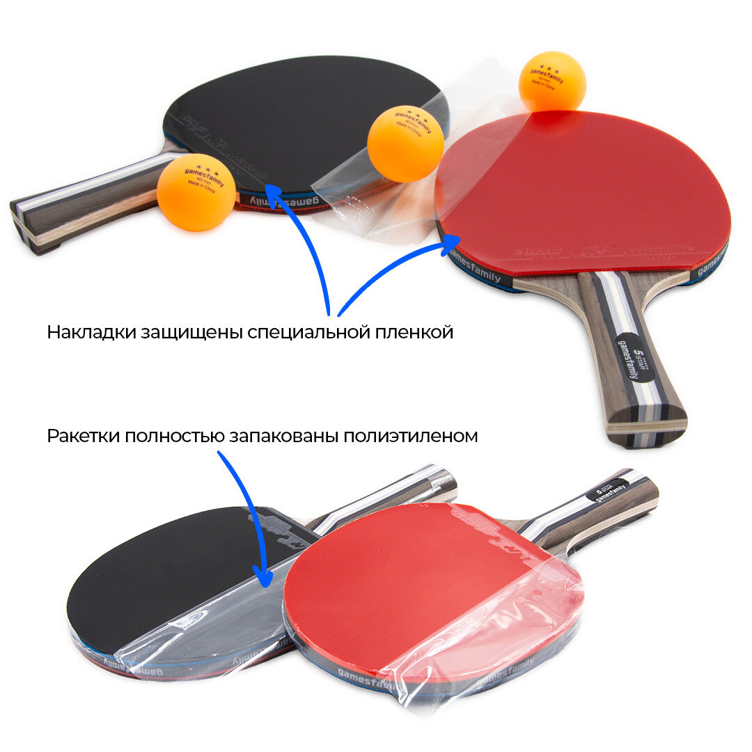 Ракетки для настольного тенниса Gamesfamily 2 полупрофессиональных ракетки, 3 белых мячика и чехол