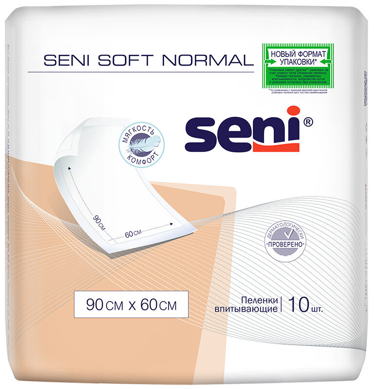 Seni Soft Normal / Сени Софт Нормал - одноразовые впитывающие пеленки, 90x60 см, 10 шт.