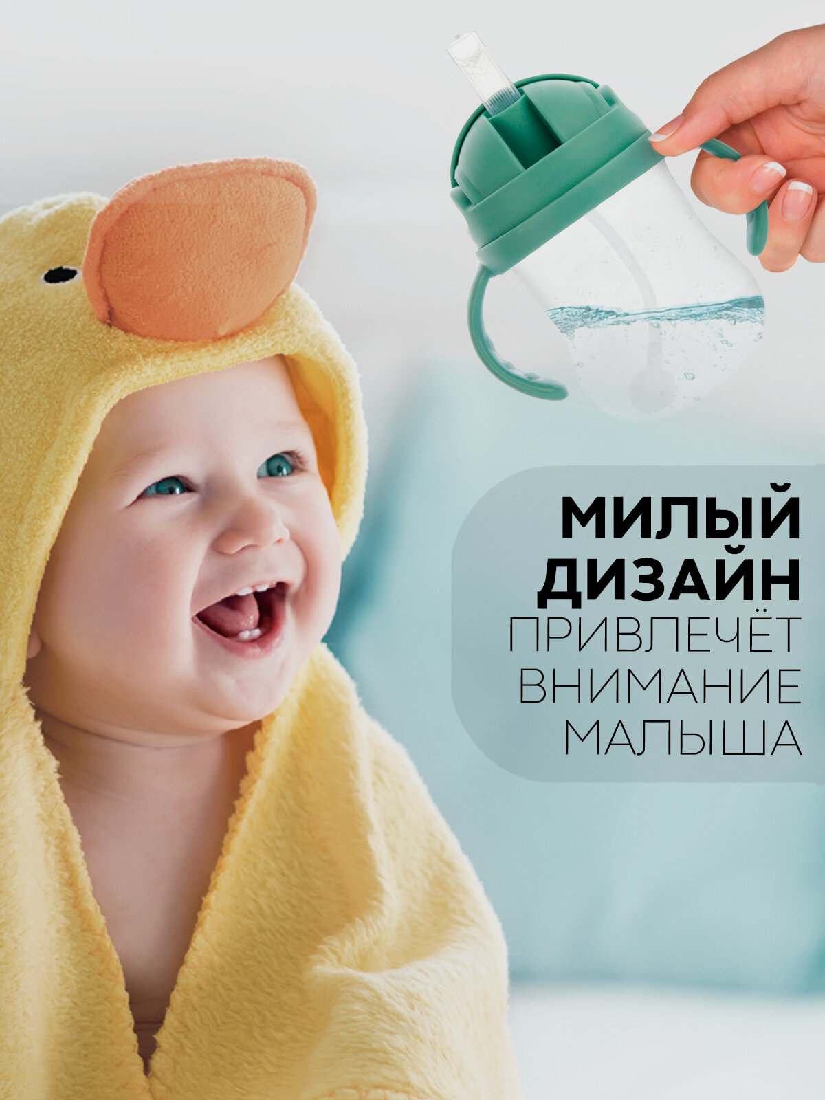 Купить Детский поильник бутылочка с трубочкой и ручками картофан, голубой 300 мл