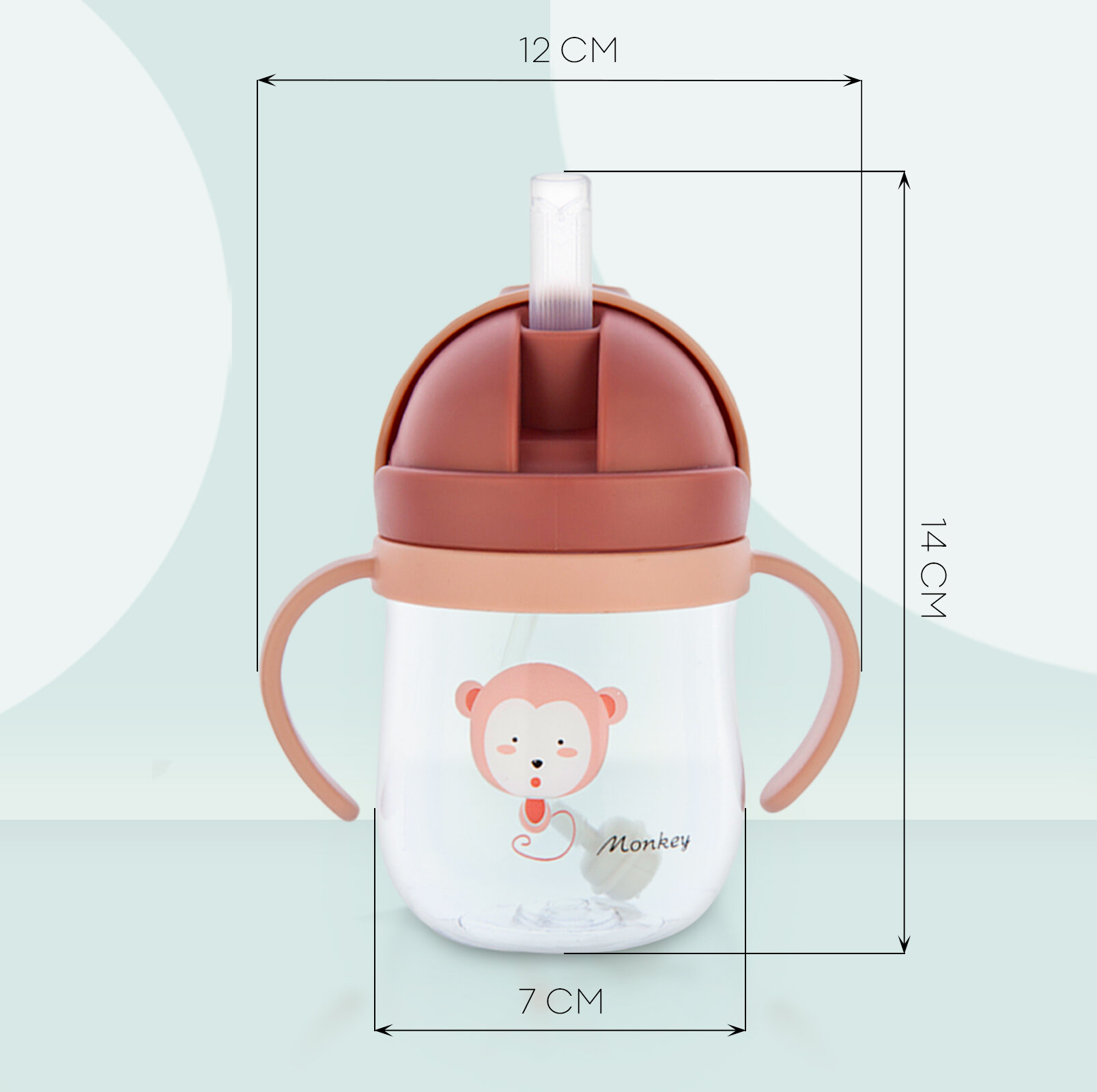 Детский поильник бутылочка с трубочкой и ручками картофан, розовый 300 мл