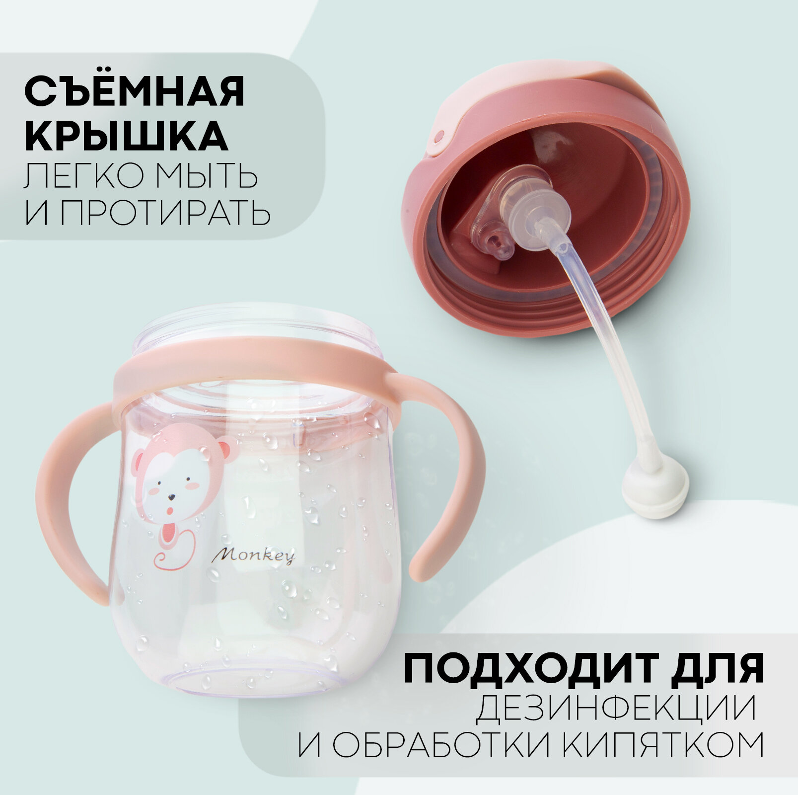 Купить Детский поильник бутылочка с трубочкой и ручками картофан, розовый 250 мл