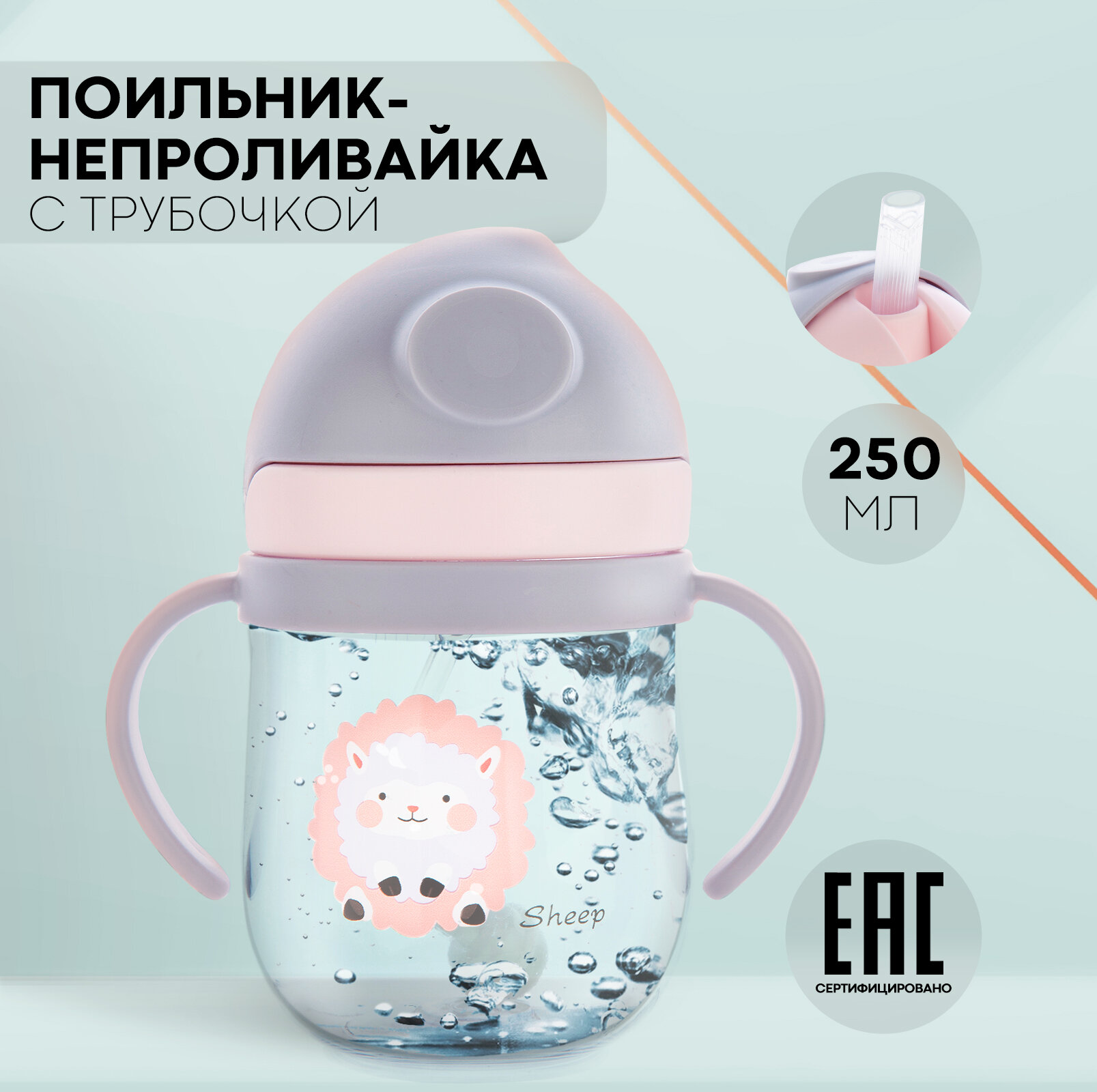 Детский поильник бутылочка с трубочкой и ручками картофан, сиреневый 250 мл интересное: