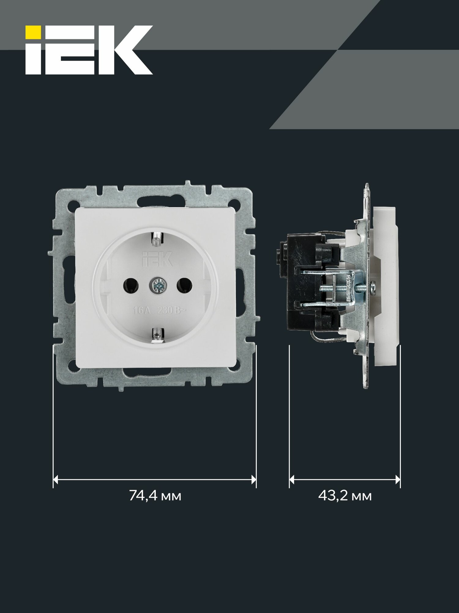 Розетка IEK BR-R11-16 BRITE, 16 А, с заземлением